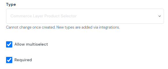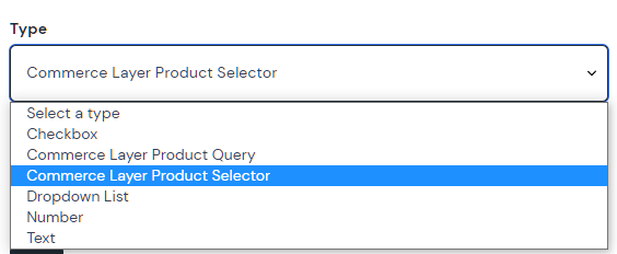 Public ID).Pick the "Commerce Layer Product Selector" parameter type from the list of types and select a specific catalog.