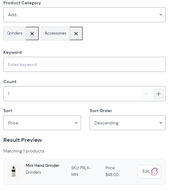 In contrast to the Product Selector type, this parameter type does not persist the specific product matches,