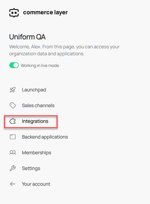 Locate the Commerce Layer integration in the list of available integrations within your Uniform project's