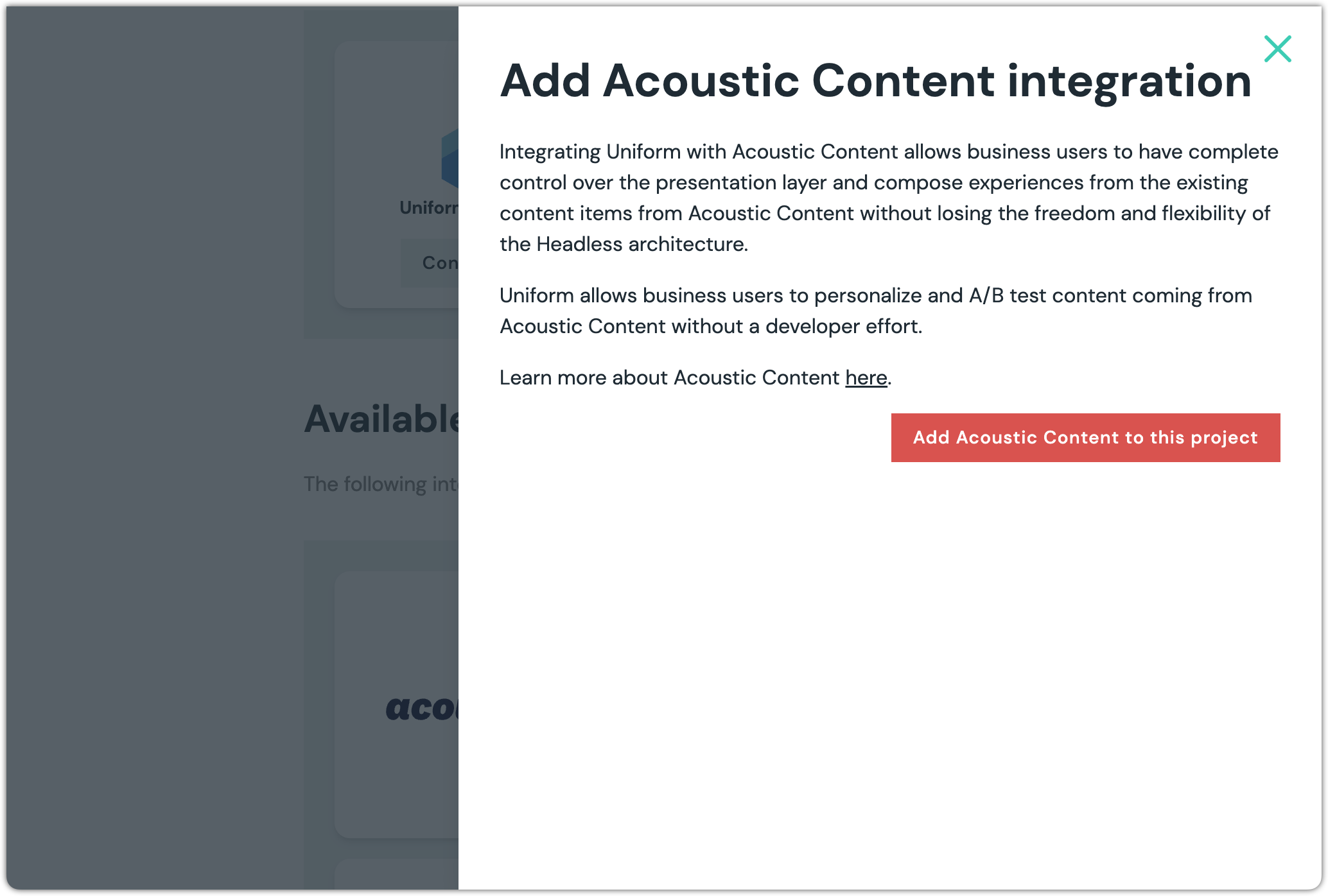 When a custom integration is added to a project, its settings are available as a new link in the left menu on the Settings section of the Uniform dashboard.