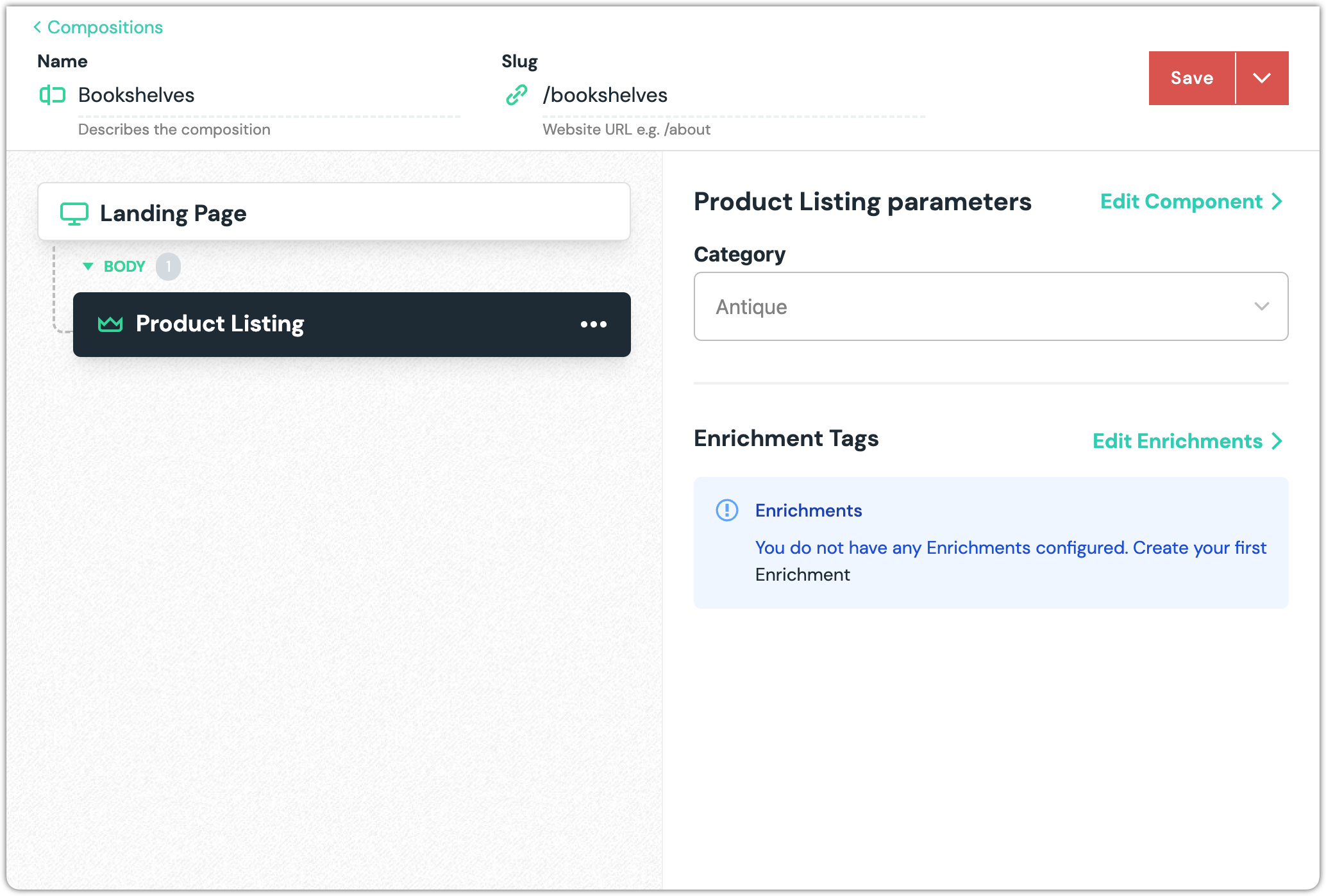 Editing happens when a Canvas user sets the value on a specific parameter on a specific component. If the parameter represents a product from a commerce system's product catalog, you might want to provide the Canvas user a visual representation of the product catalog to make it easier for the user to select the appropriate product.