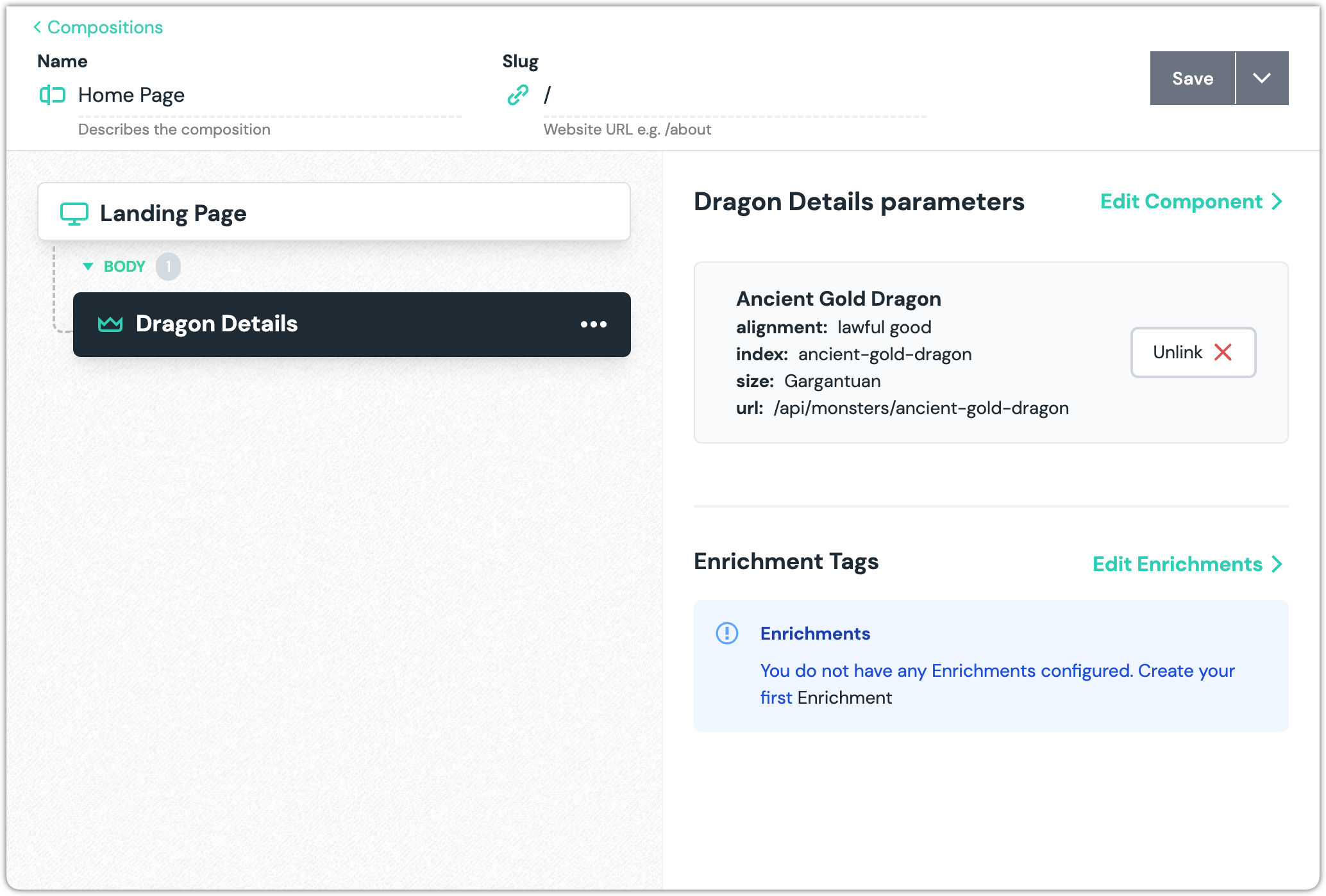 This custom integration is a simplified example that demonstrates the essential features and concepts involved when building a custom integration. The scenario involves allowing a Uniform Canvas editor to add information about one or more monsters to a landing page.