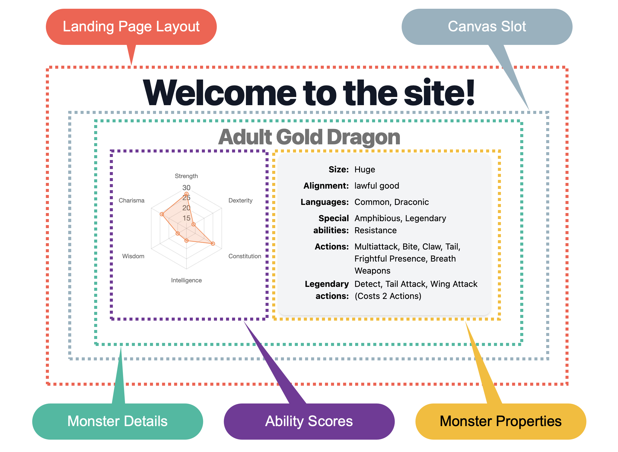 - Canvas slot - Uniform component in the landing page layout component. This component enables Canvas editors to add components to the page without having to involve a developer.