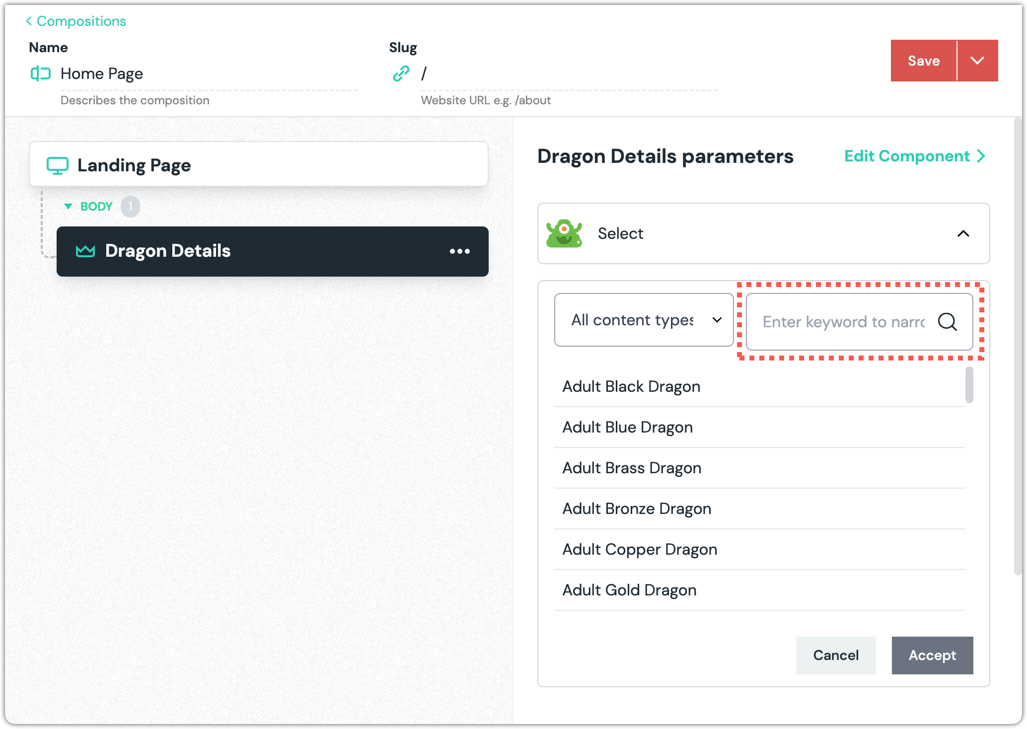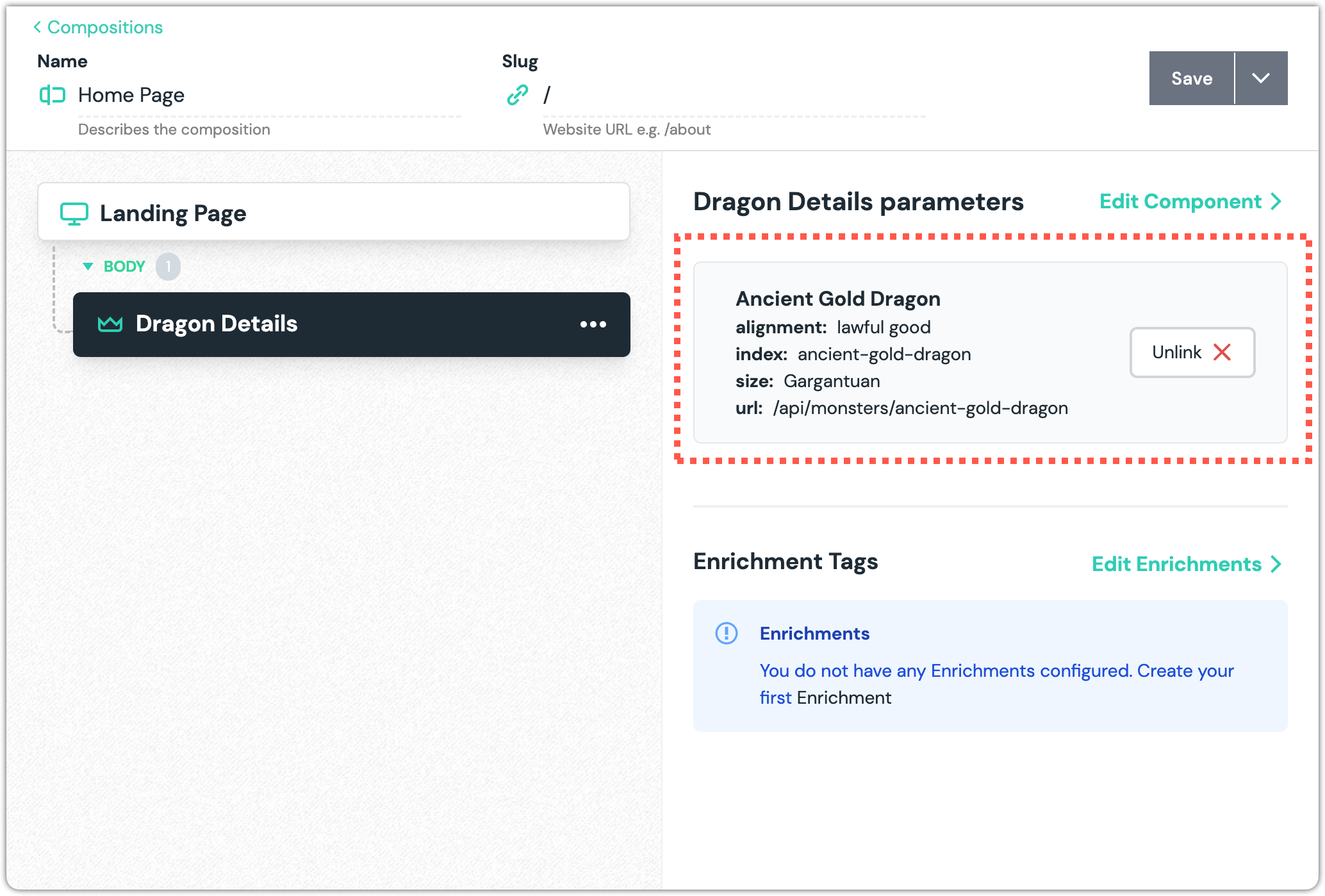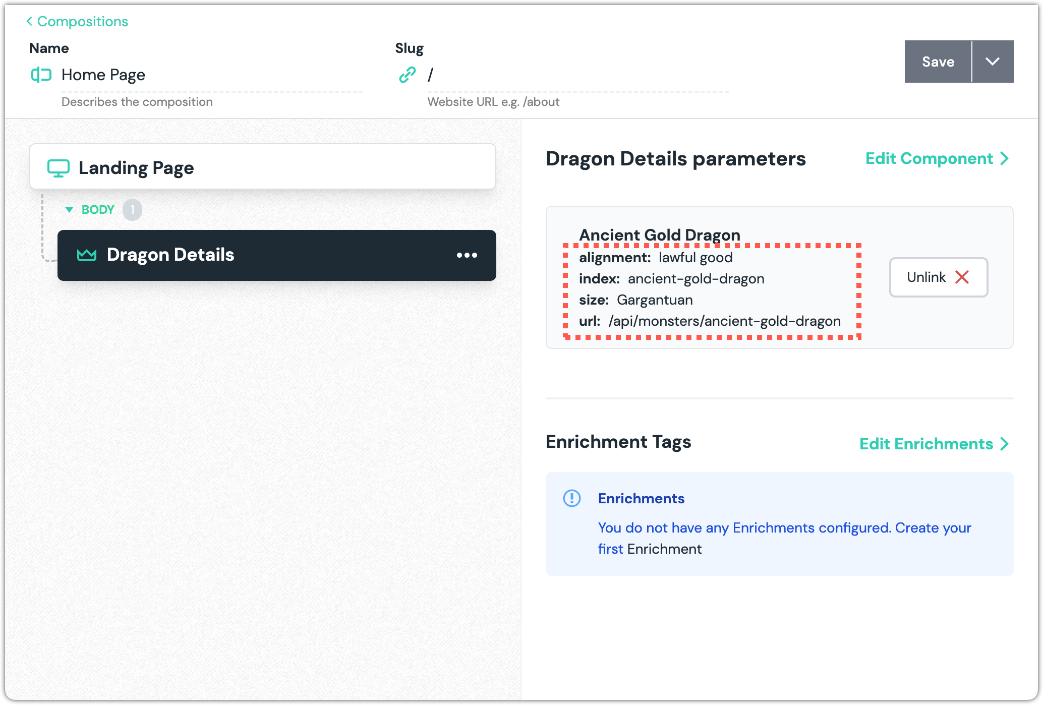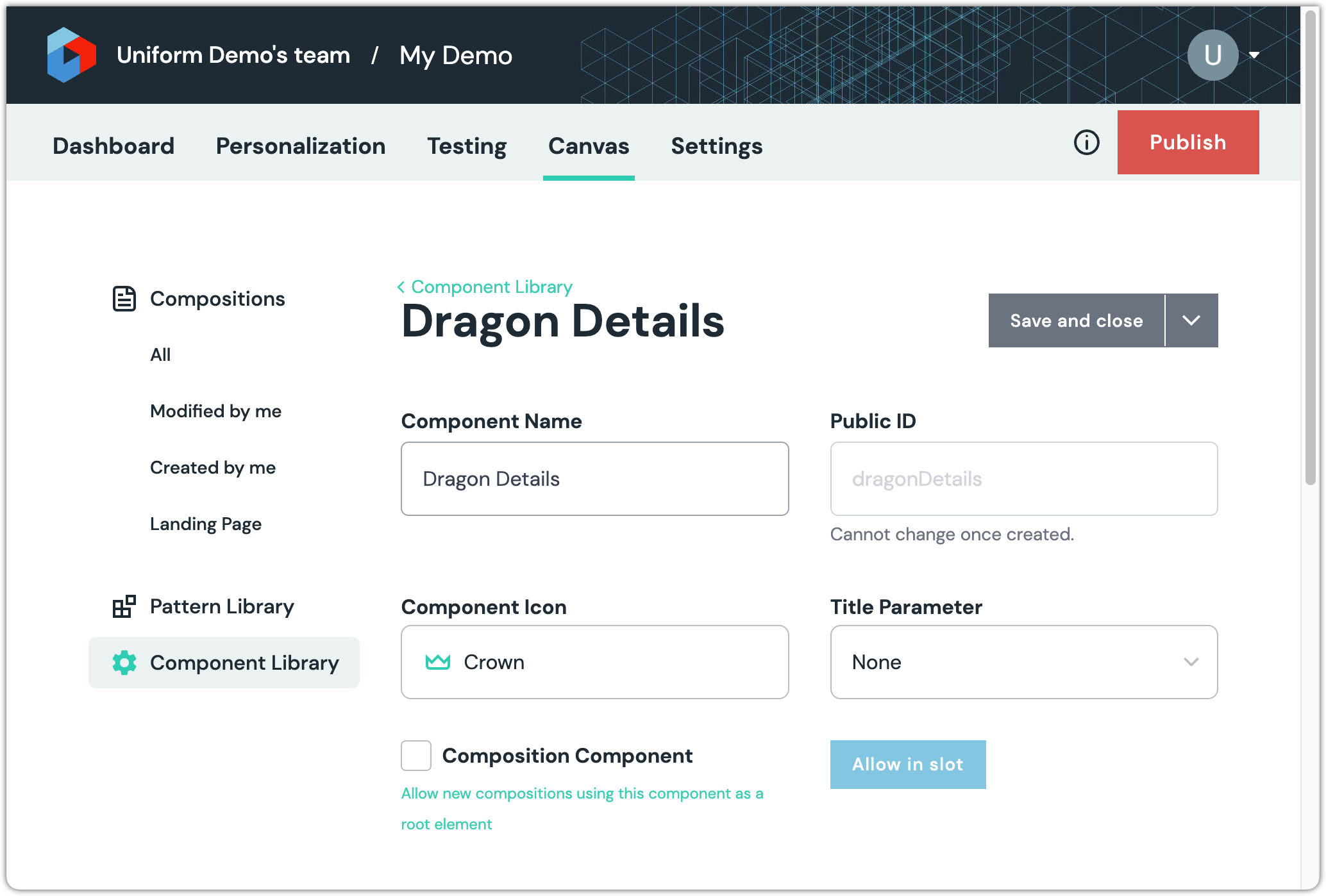 In Uniform, navigate to Canvas > Component Library > Dragon Details
