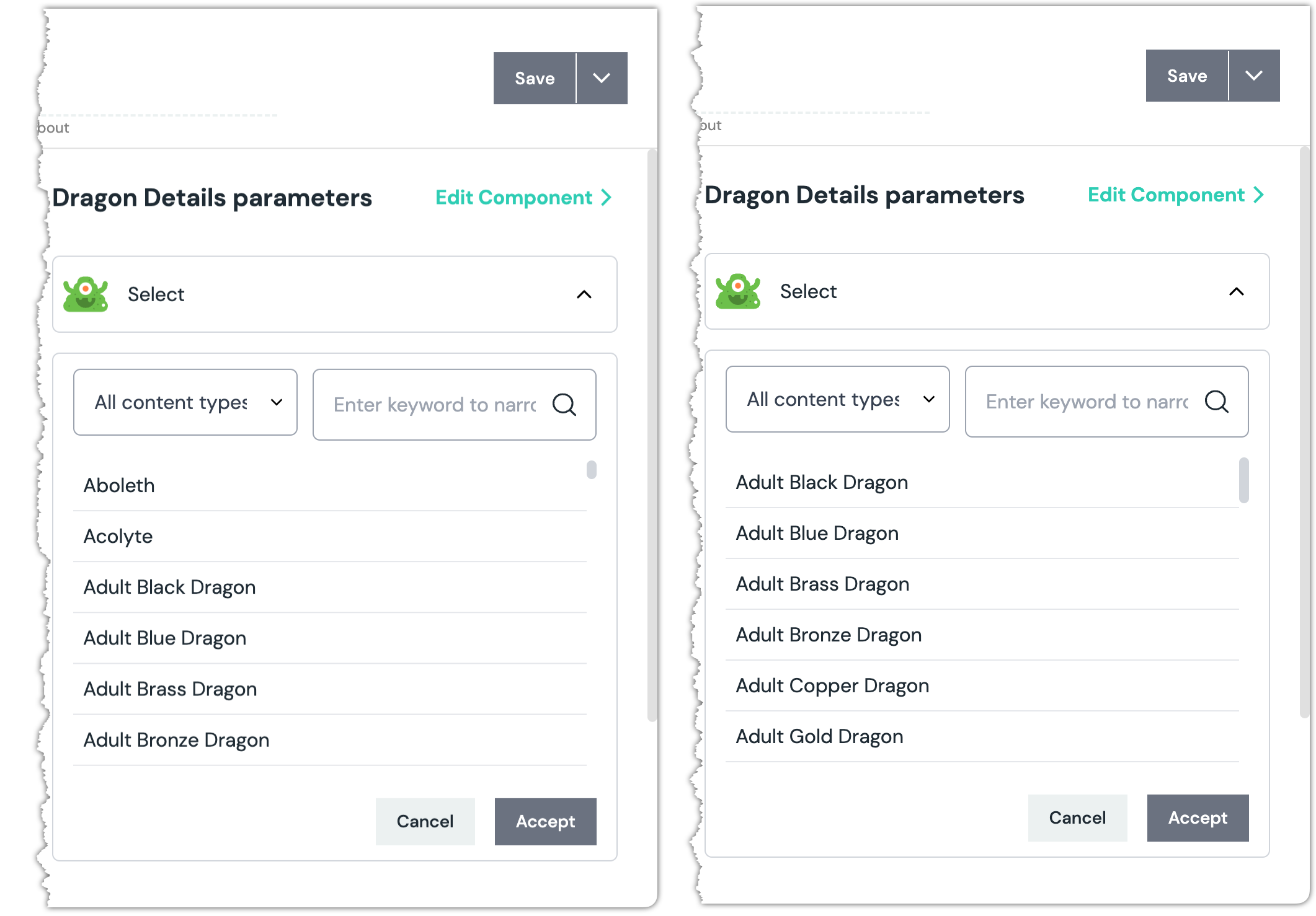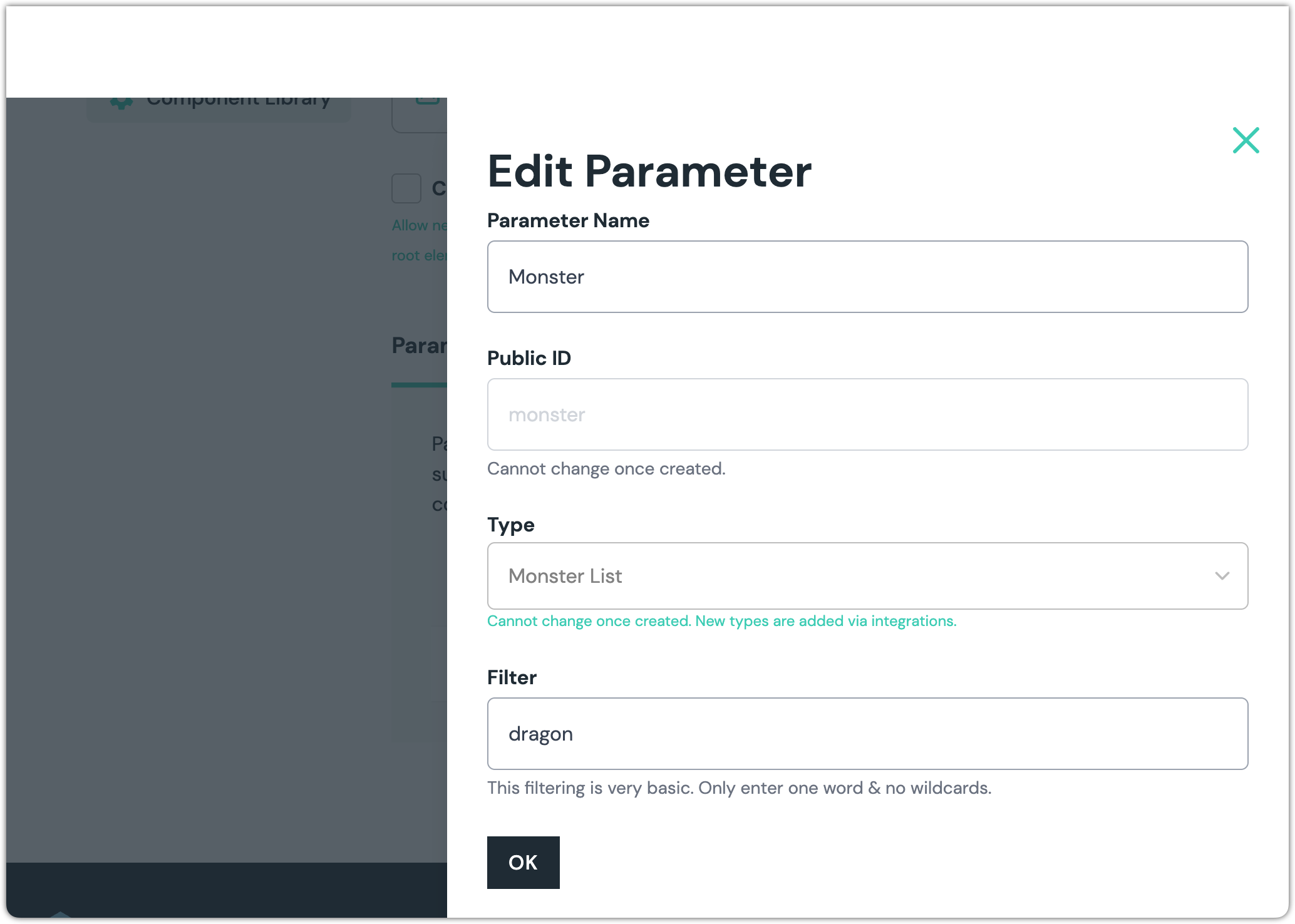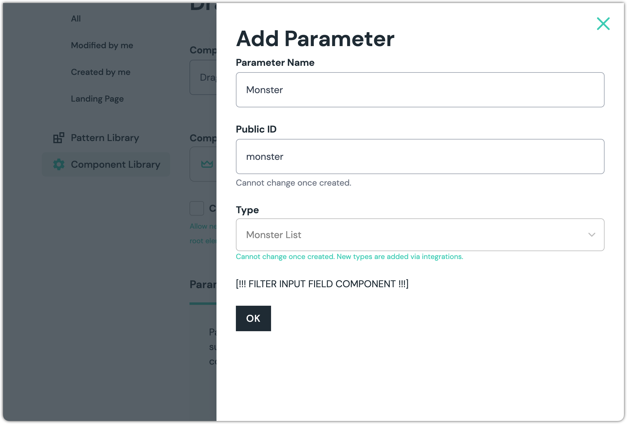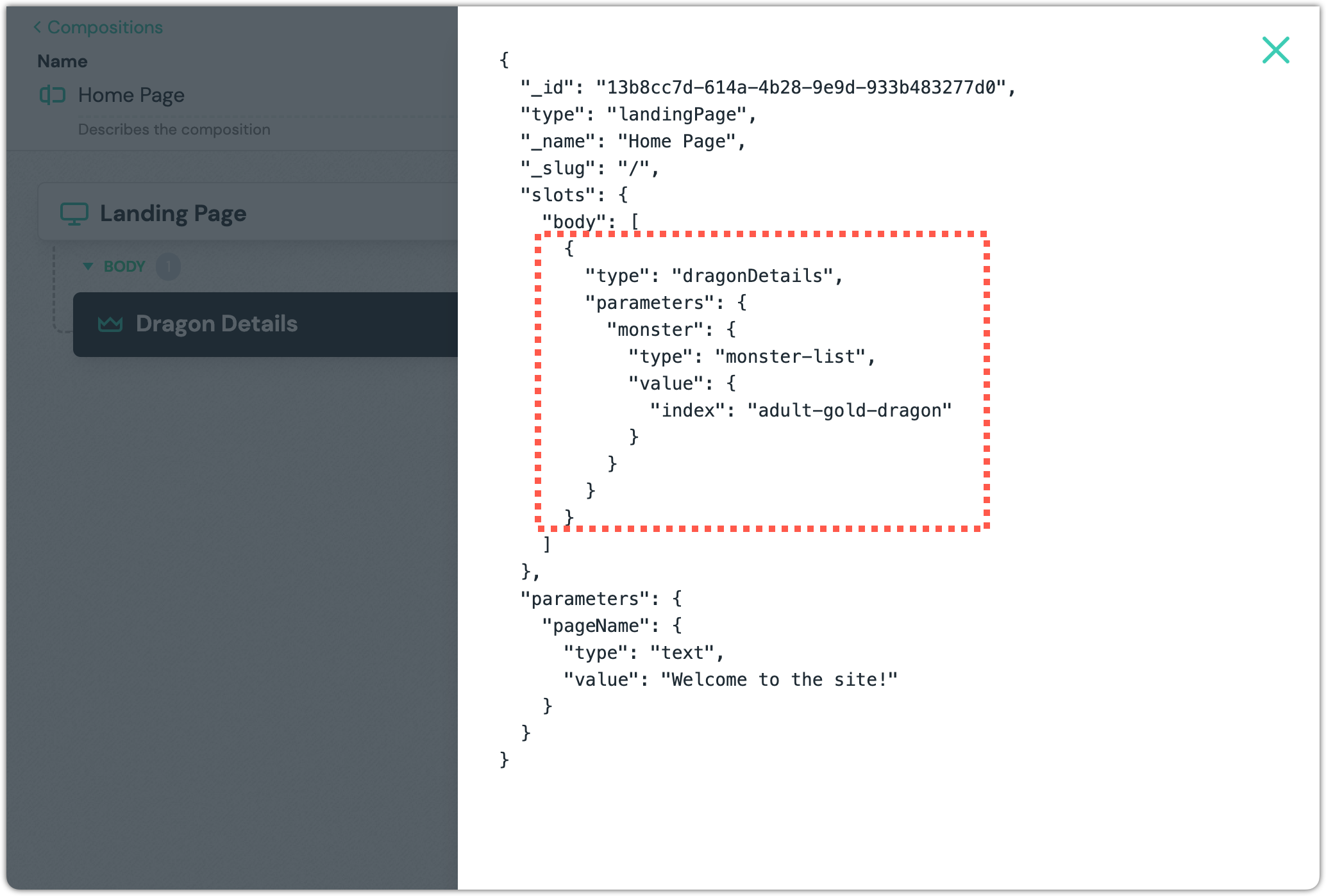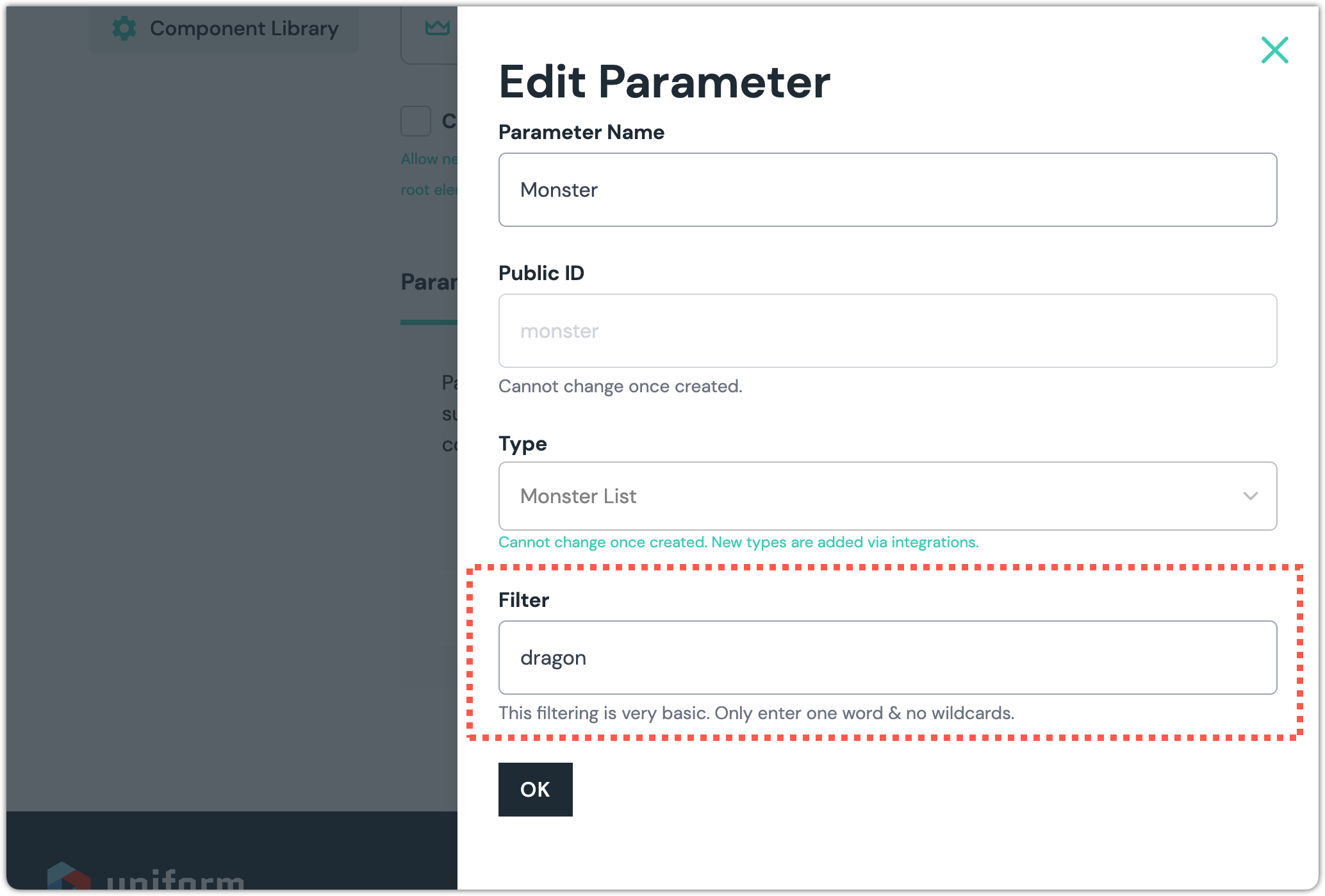 In the create dev environment section, you used the Uniform CLI to push components and a composition to Canvas. In this section you will add a parameter to the Dragon Details that allows a Canvas use to use your custom integration to select a monster.