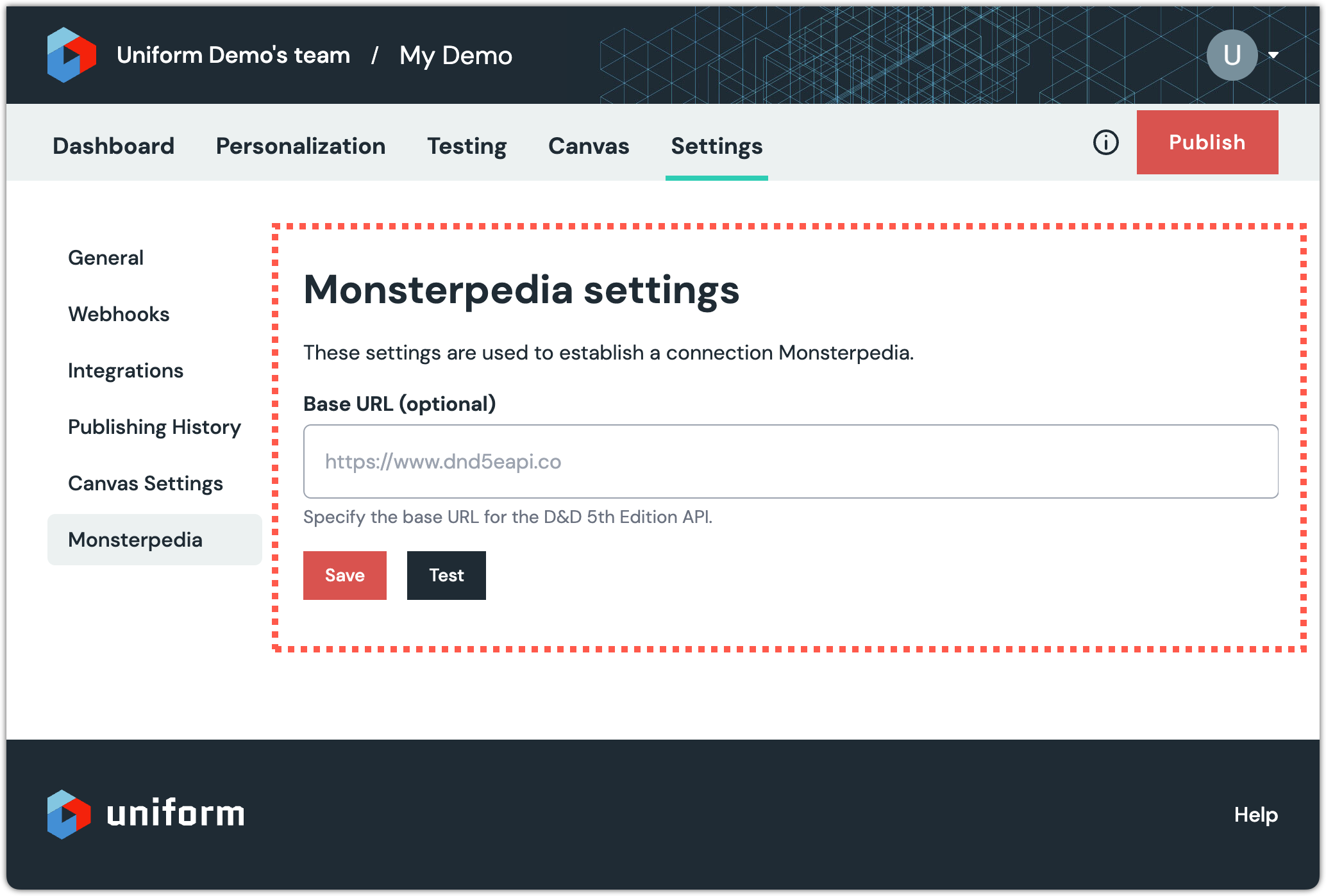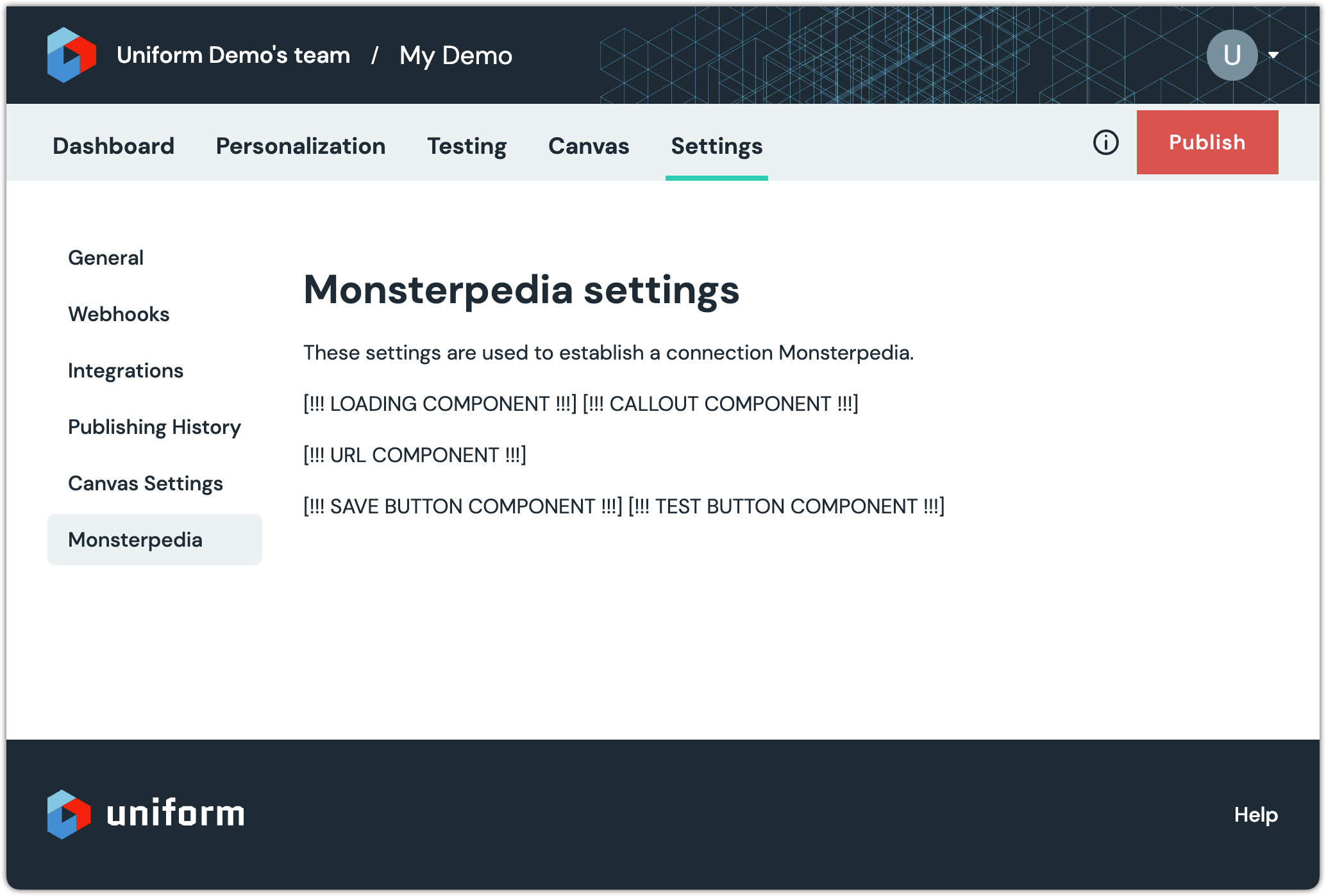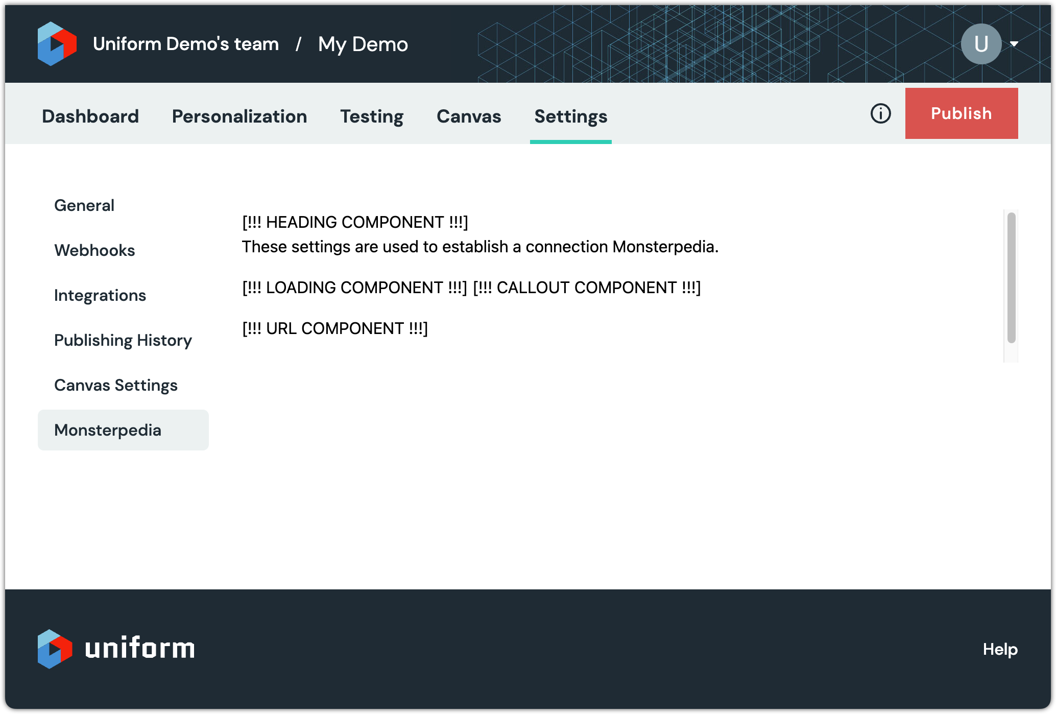 apps\demo-monsterpedia\.envto match the settings that apply to your Uniform project.Changing the