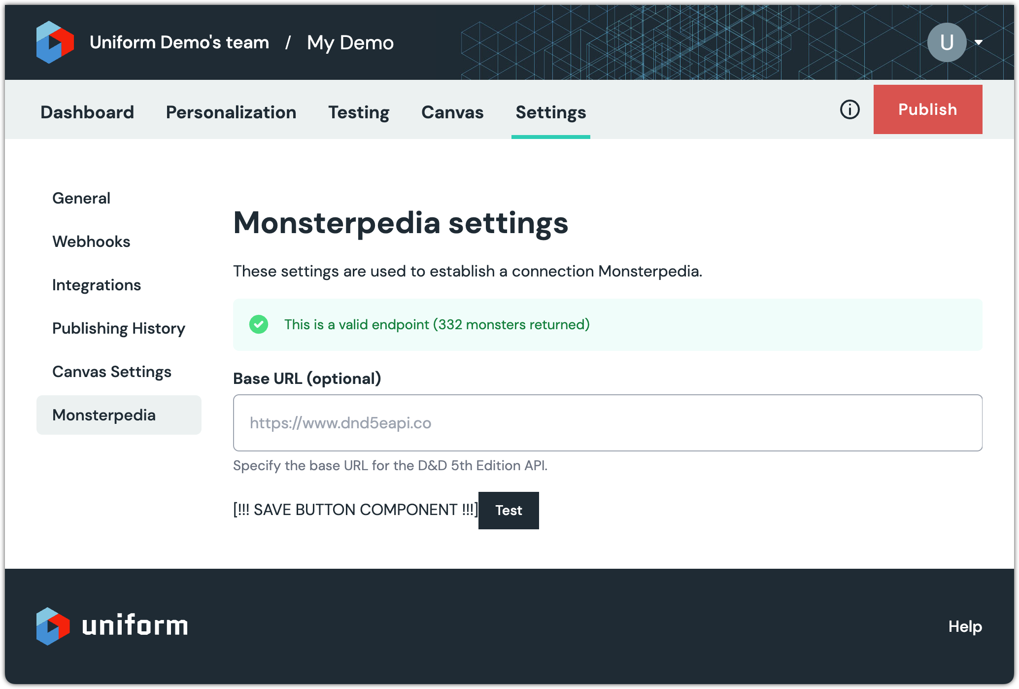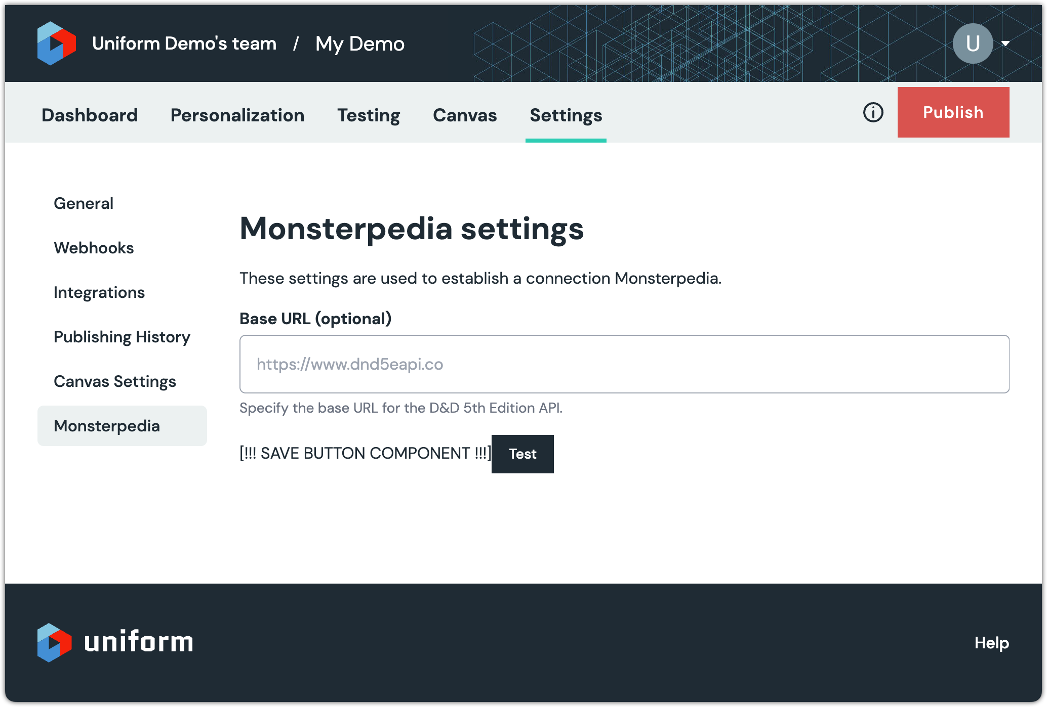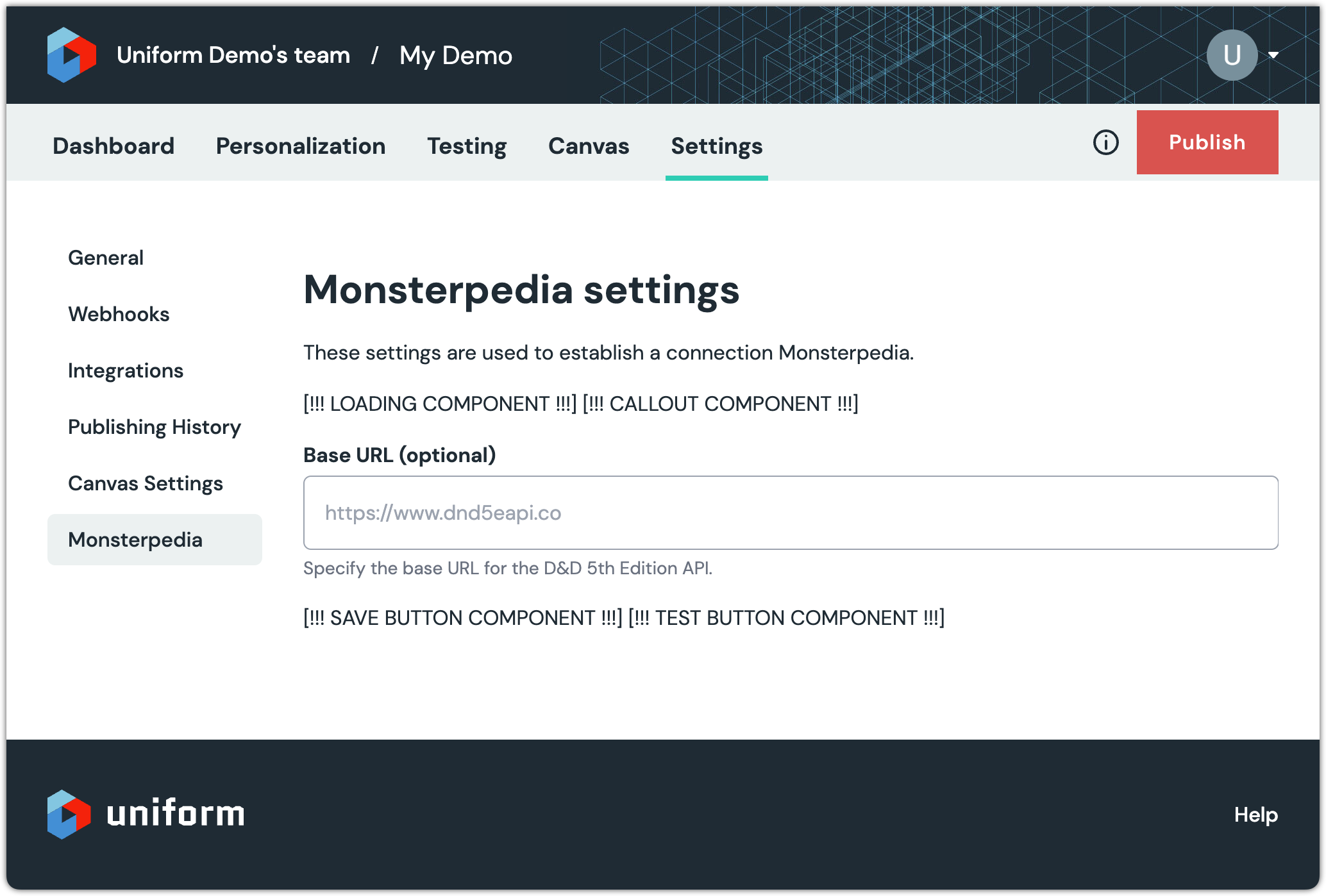 apps\demo-monsterpedia\.envto match the settings that apply to your Uniform project.Changing the