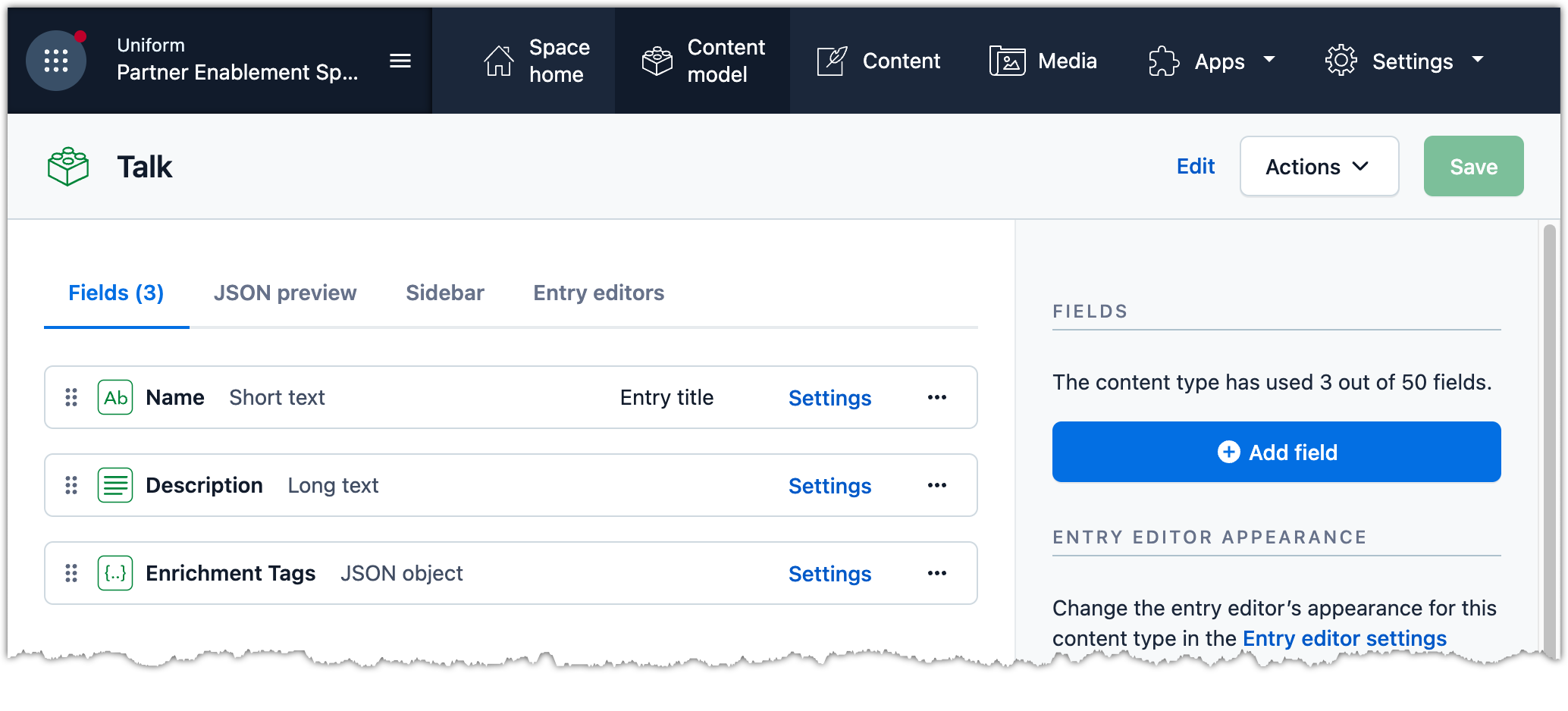 Click a link on one of the content types you enabled. A new field Enrichment Tags is added to the content type.