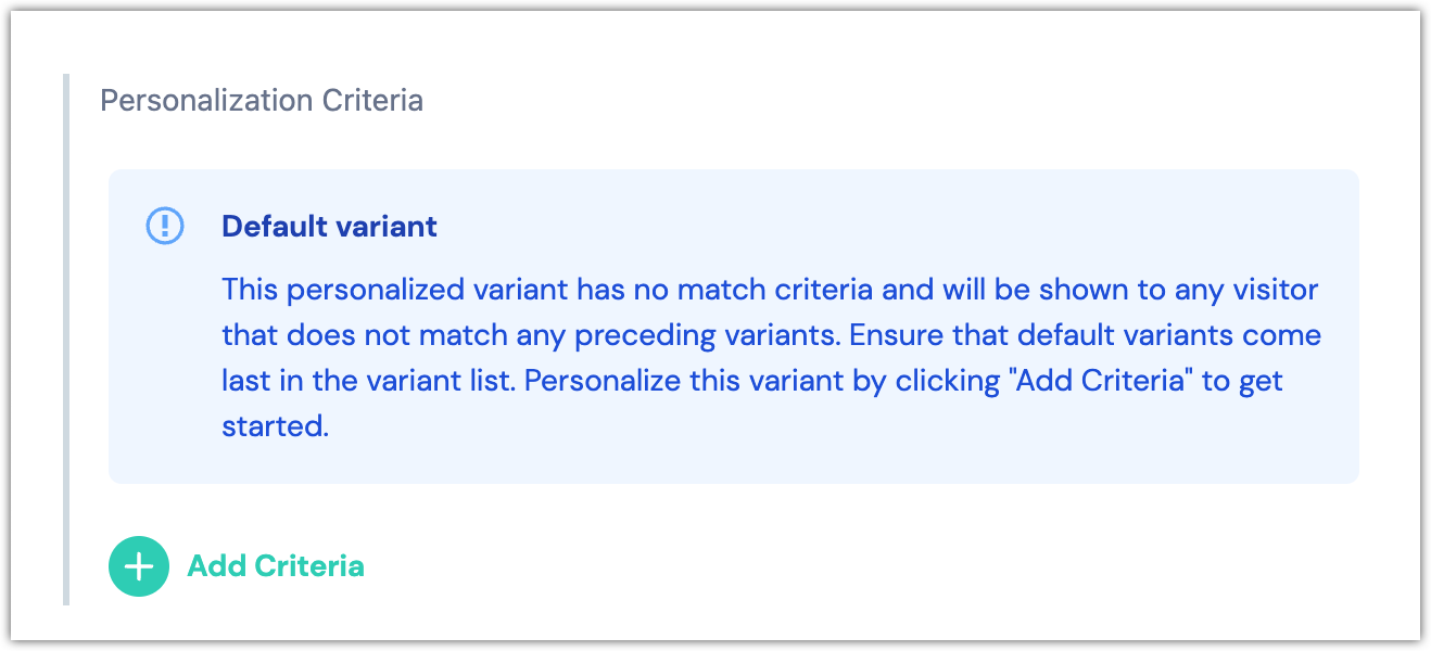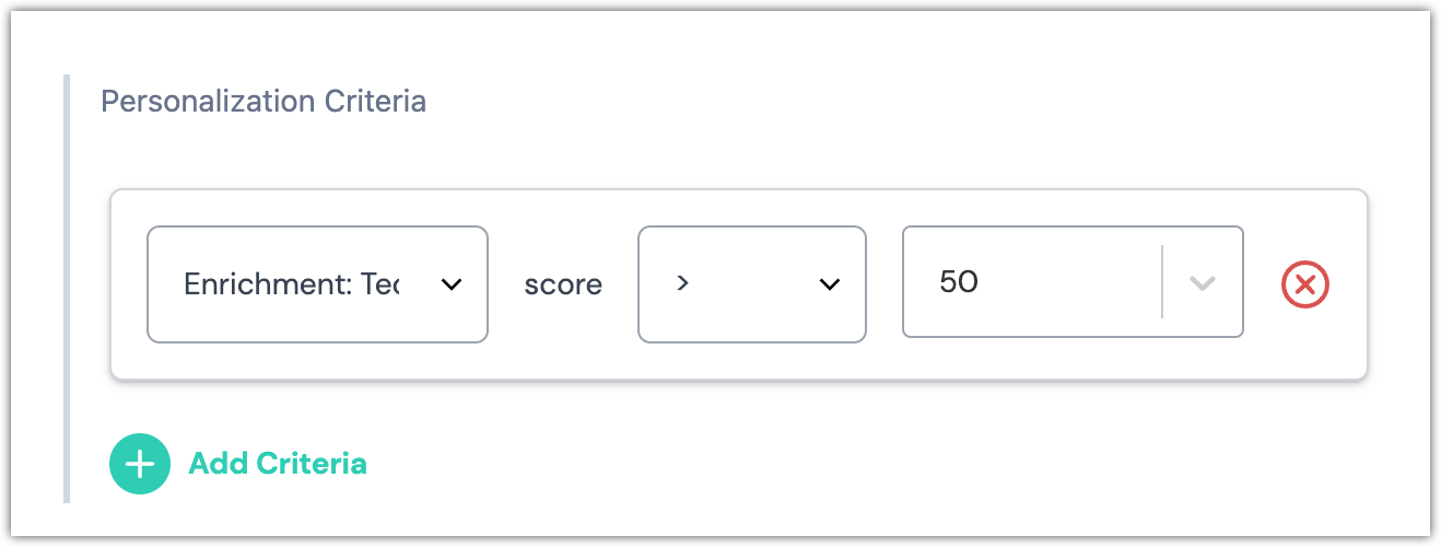 - Add more personalization criteria by clicking Add Criteria.