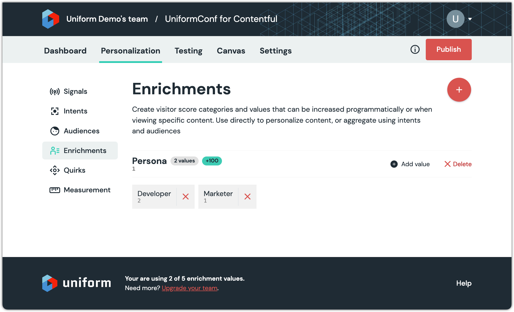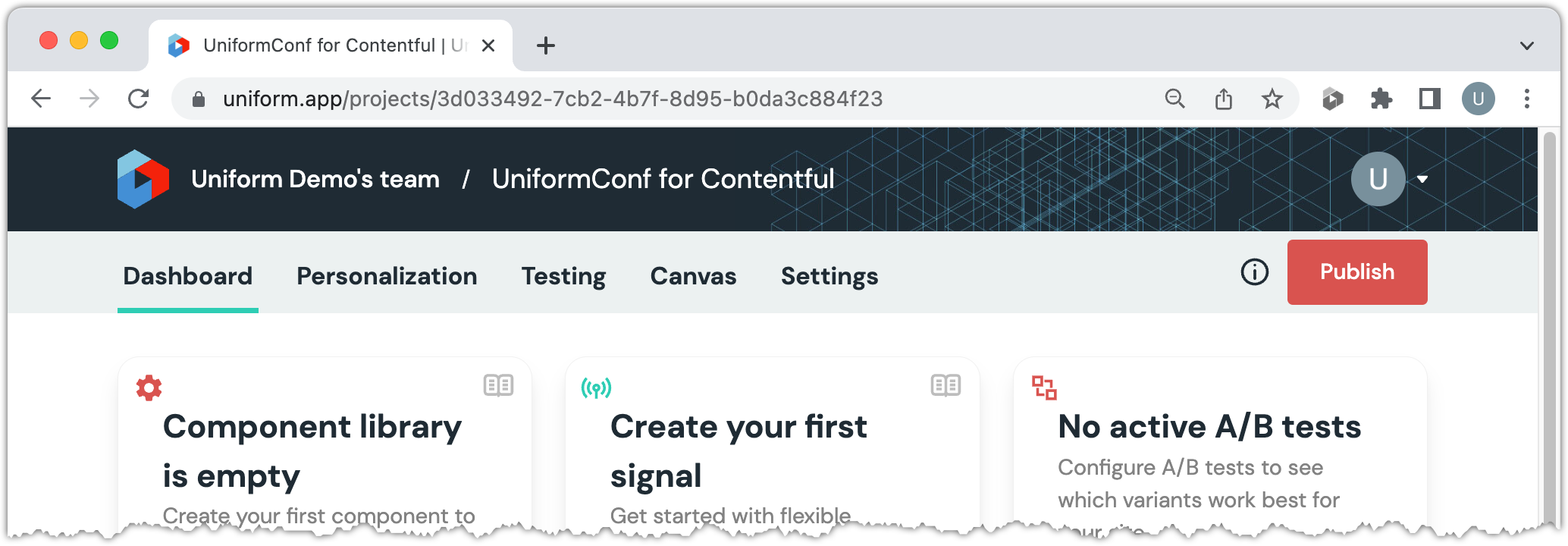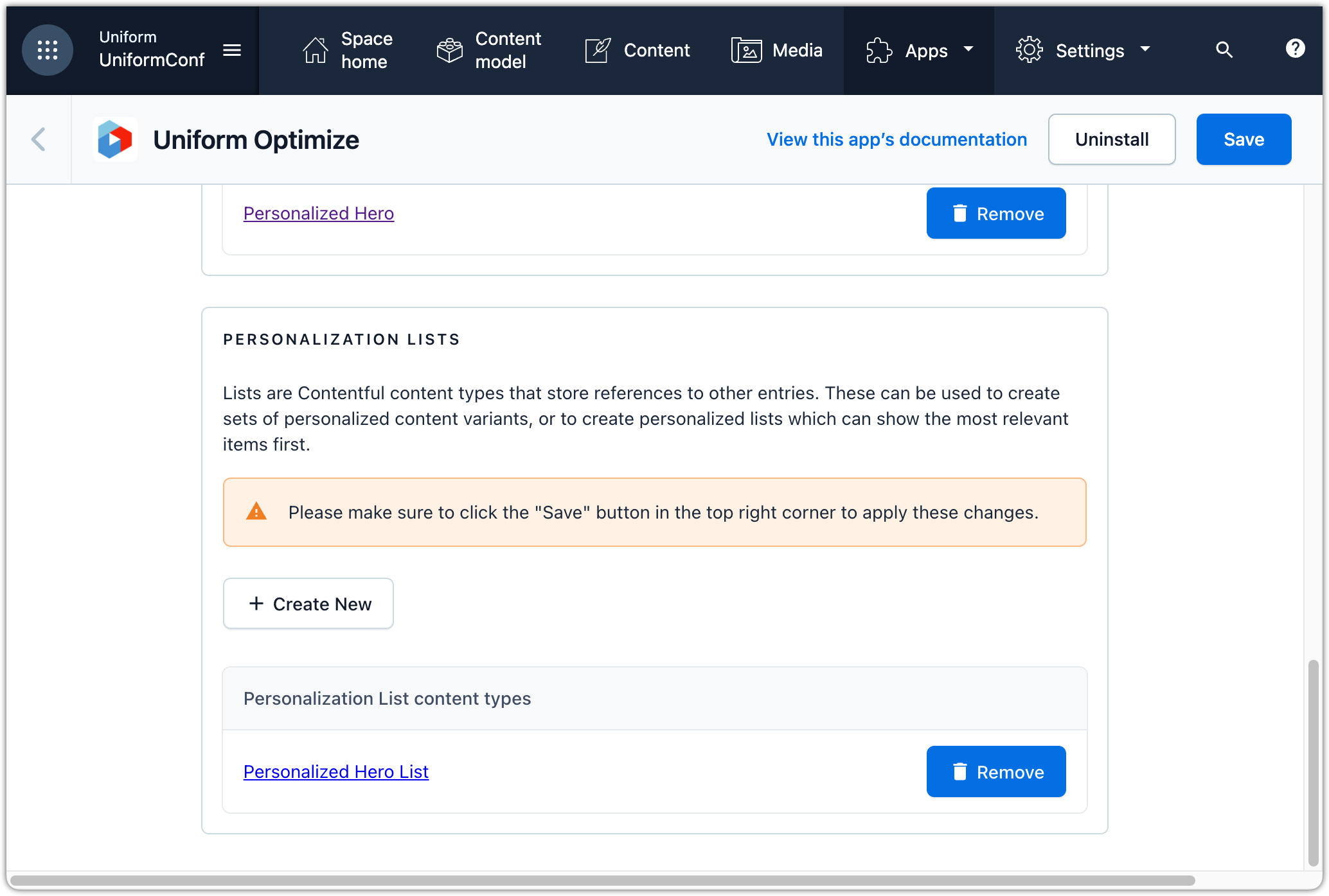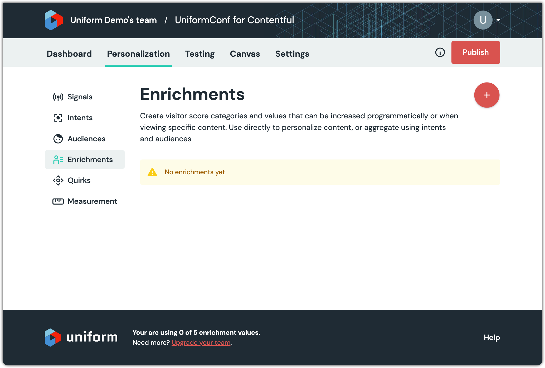 - Administrator access to Uniform - to configure the personalization settings that are available in Contentful. If you do not already have a Uniform account, you can get a free one at https://uniform.app.