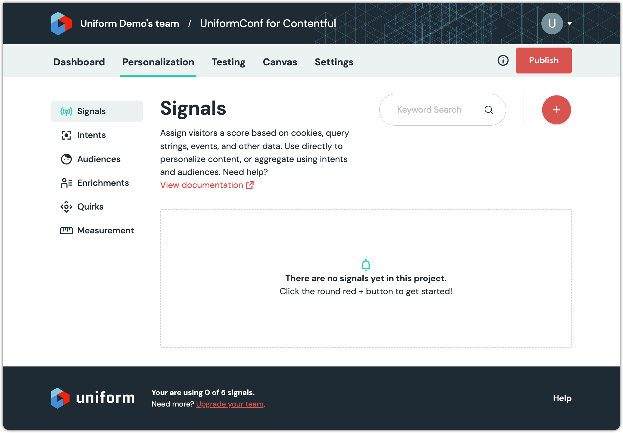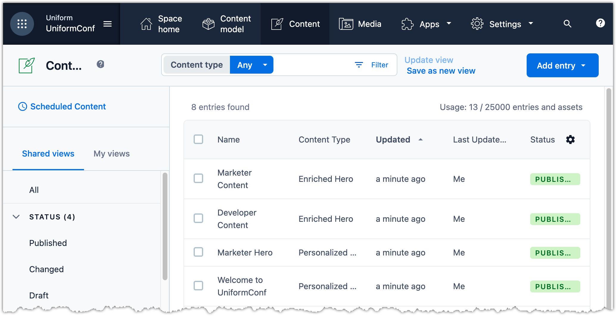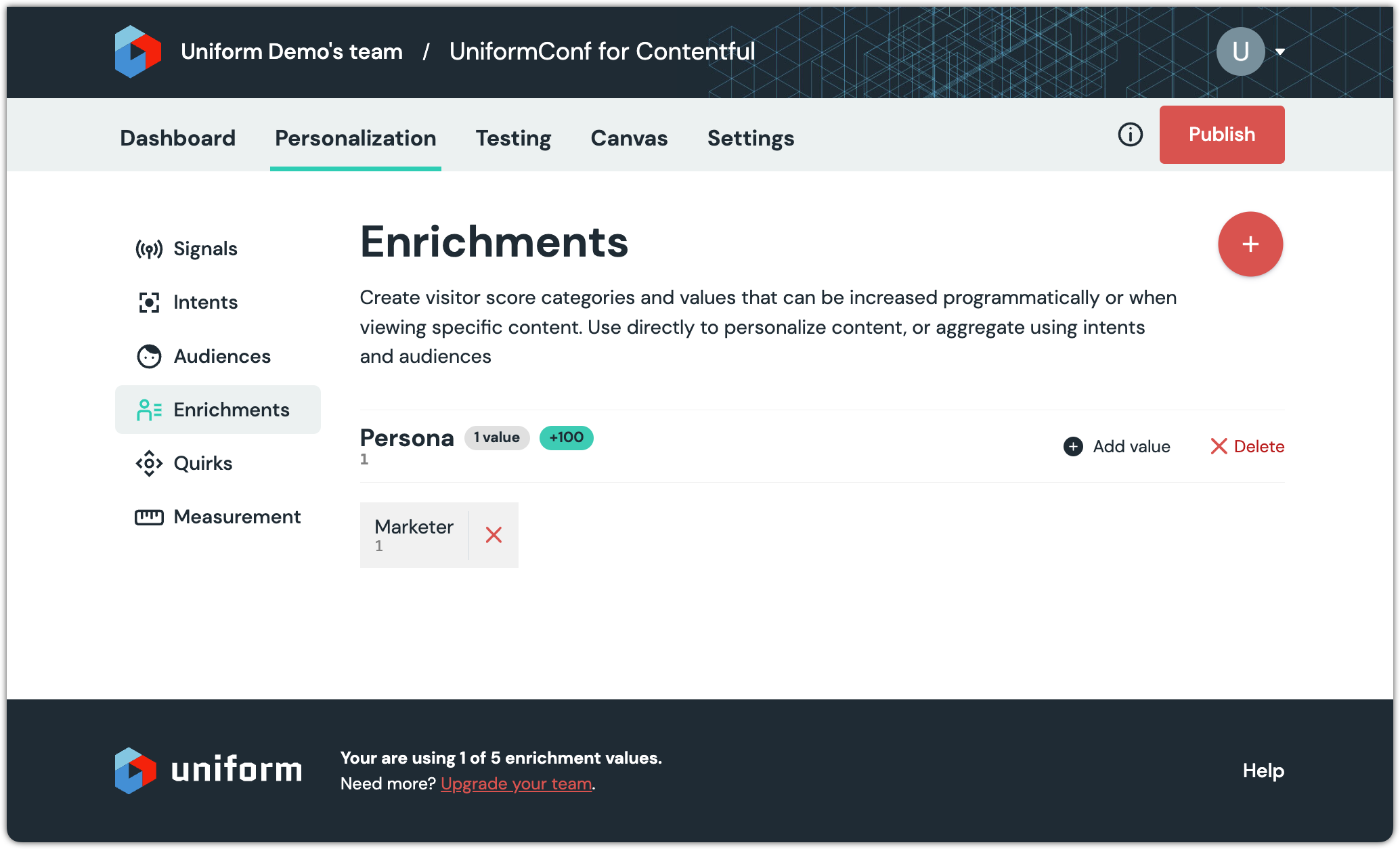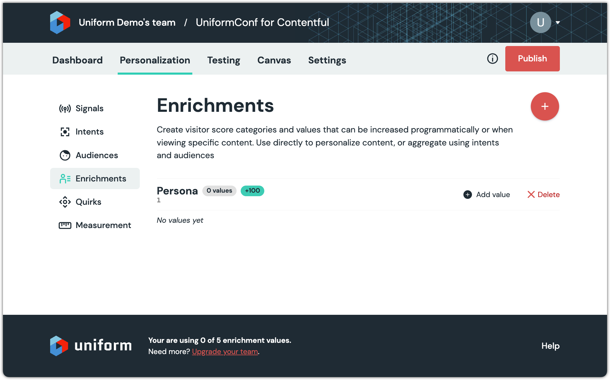 - Administrator access to Uniform - to configure the personalization settings that are available in Contentful. If you do not already have a Uniform account, you can get a free one at https://uniform.app.