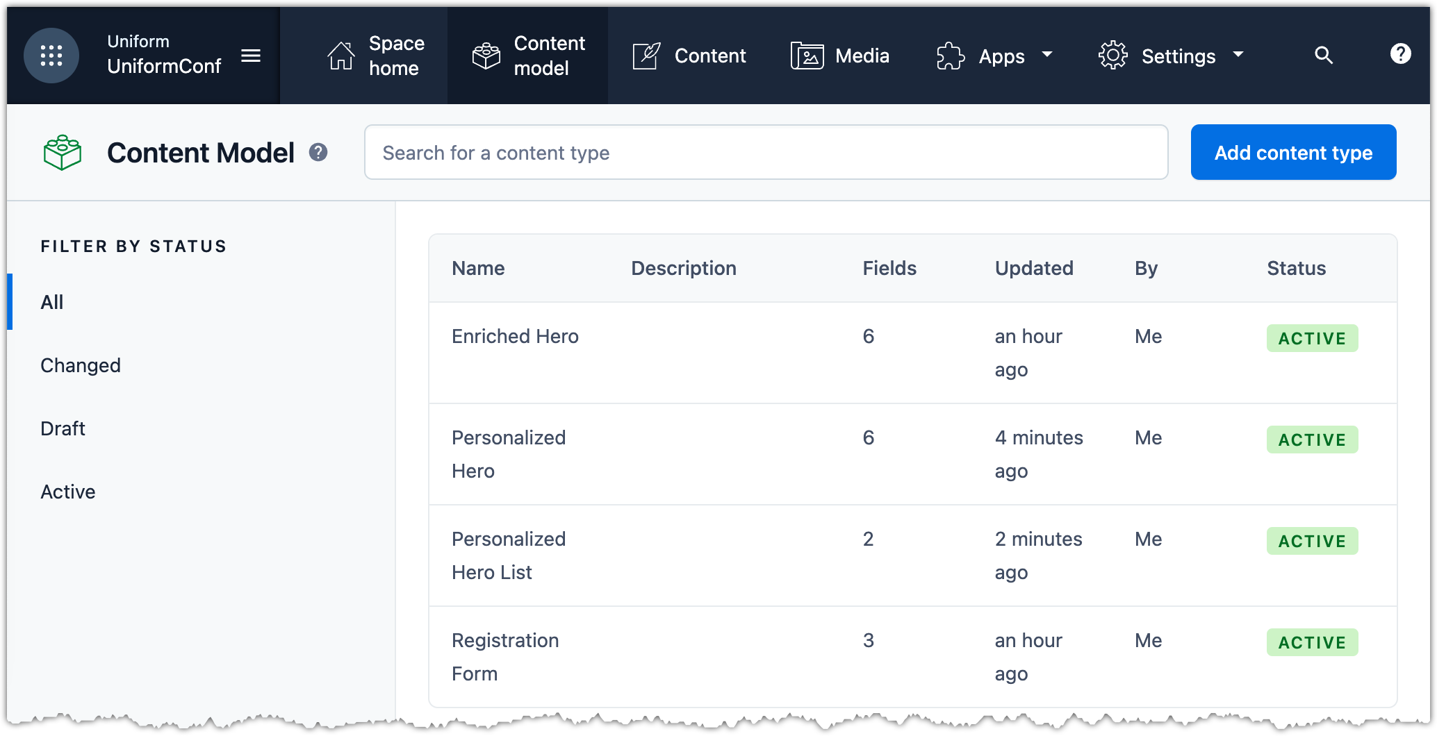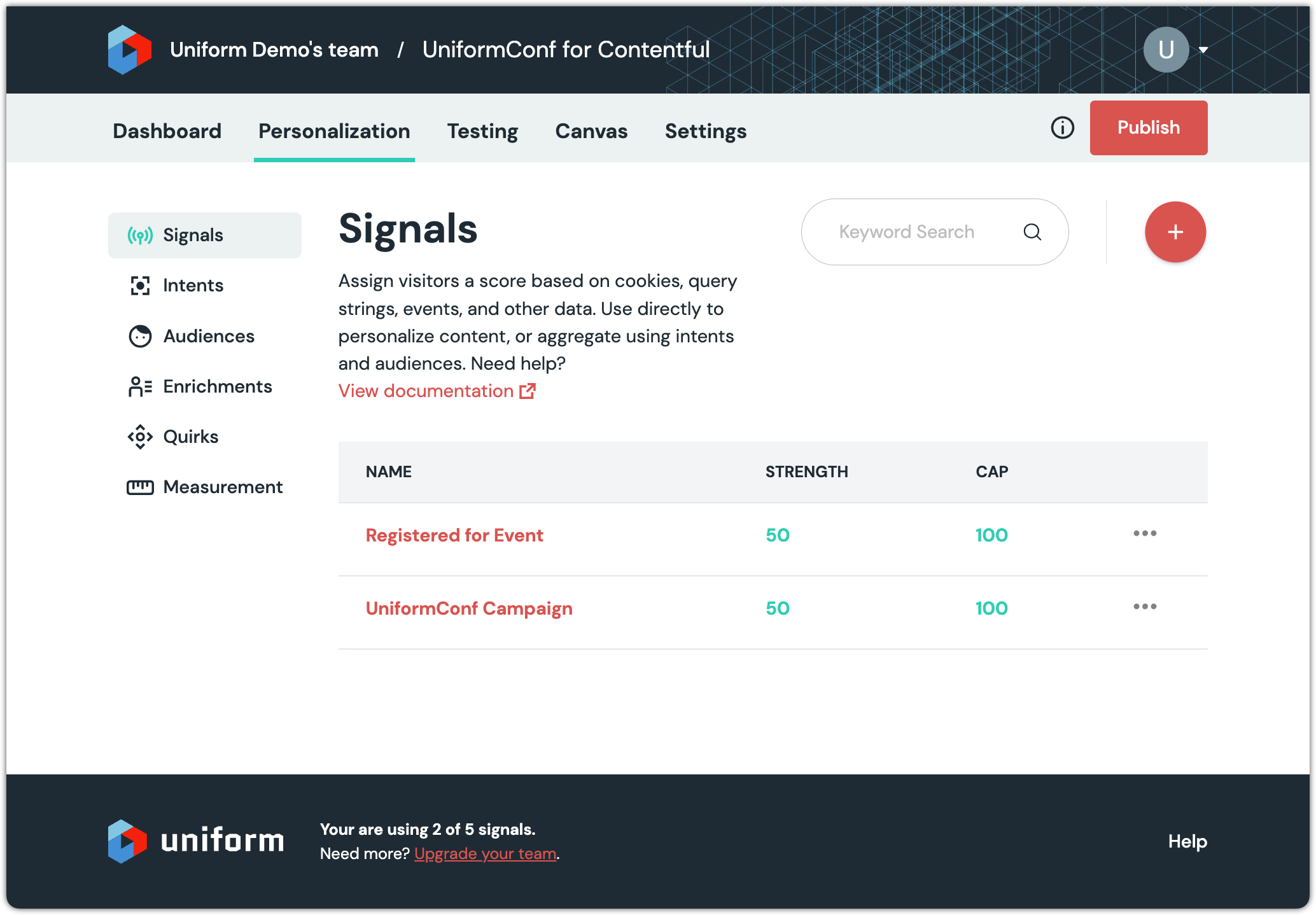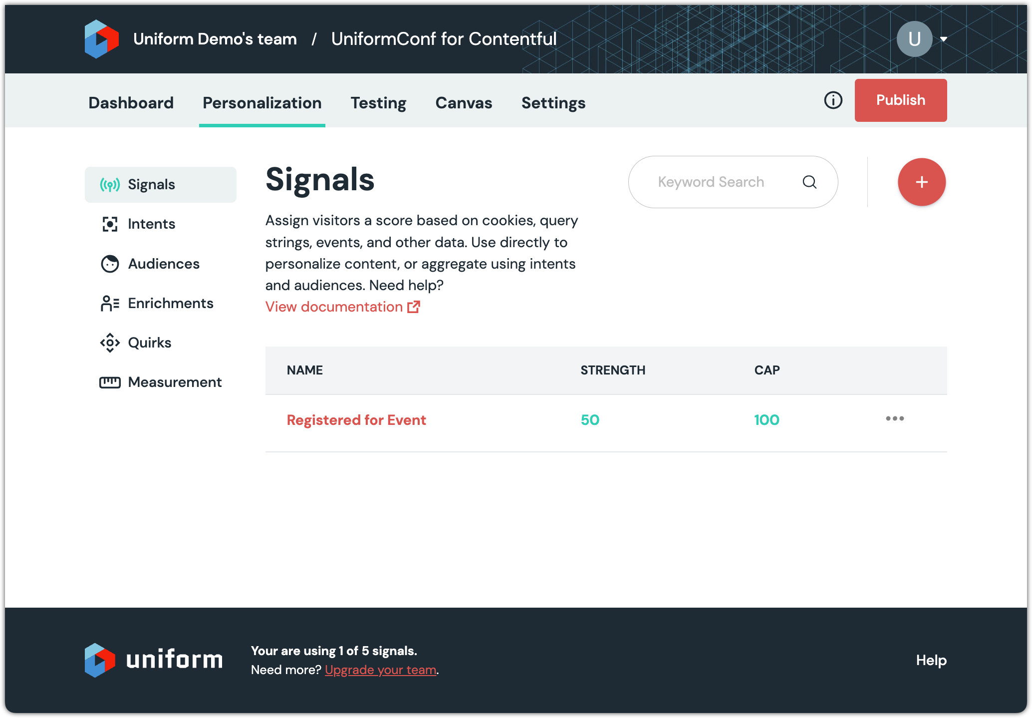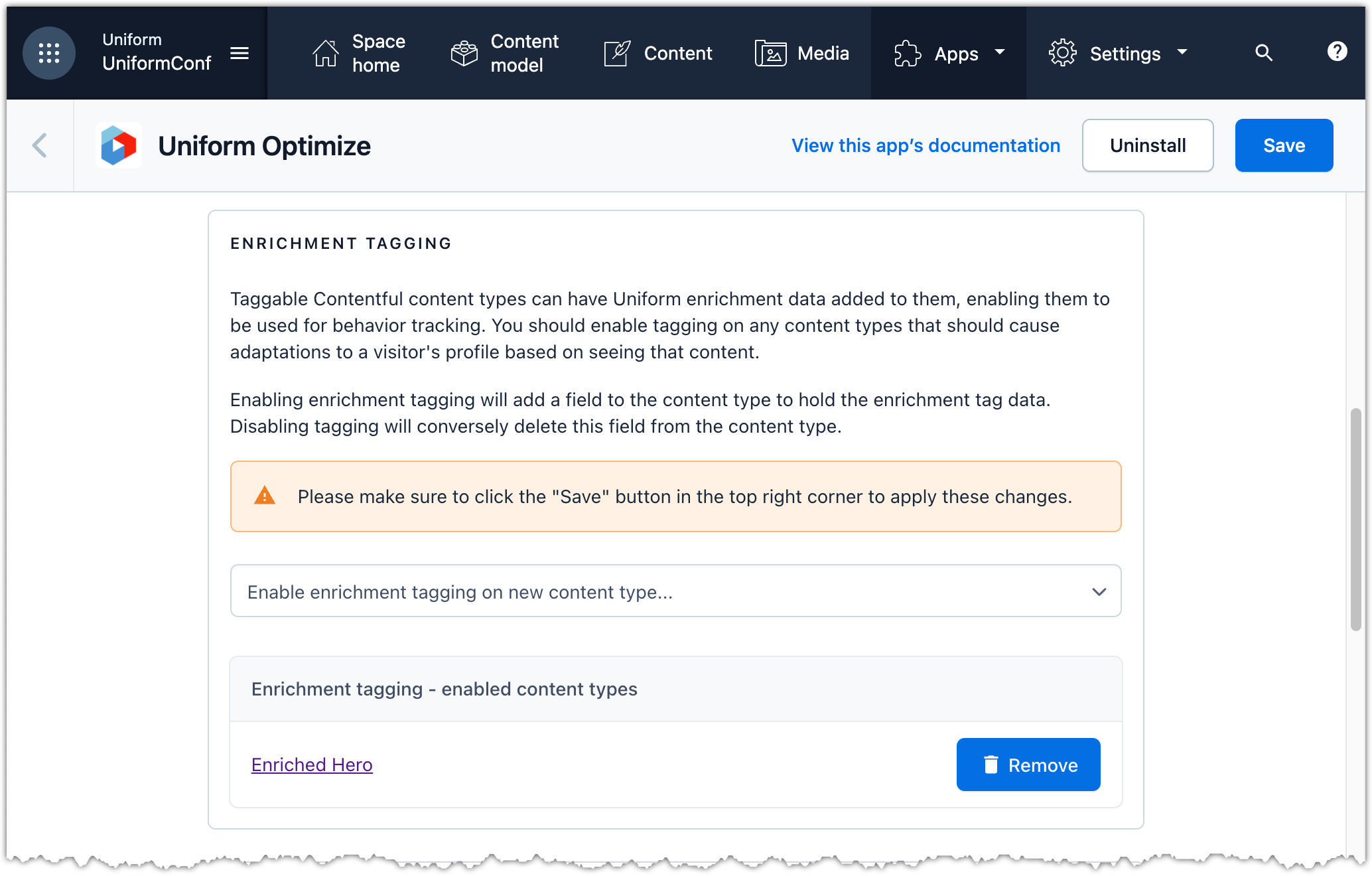 - Administrator access to Uniform - to configure the personalization settings that are available in Contentful. If you do not already have a Uniform account, you can get a free one at https://uniform.app.