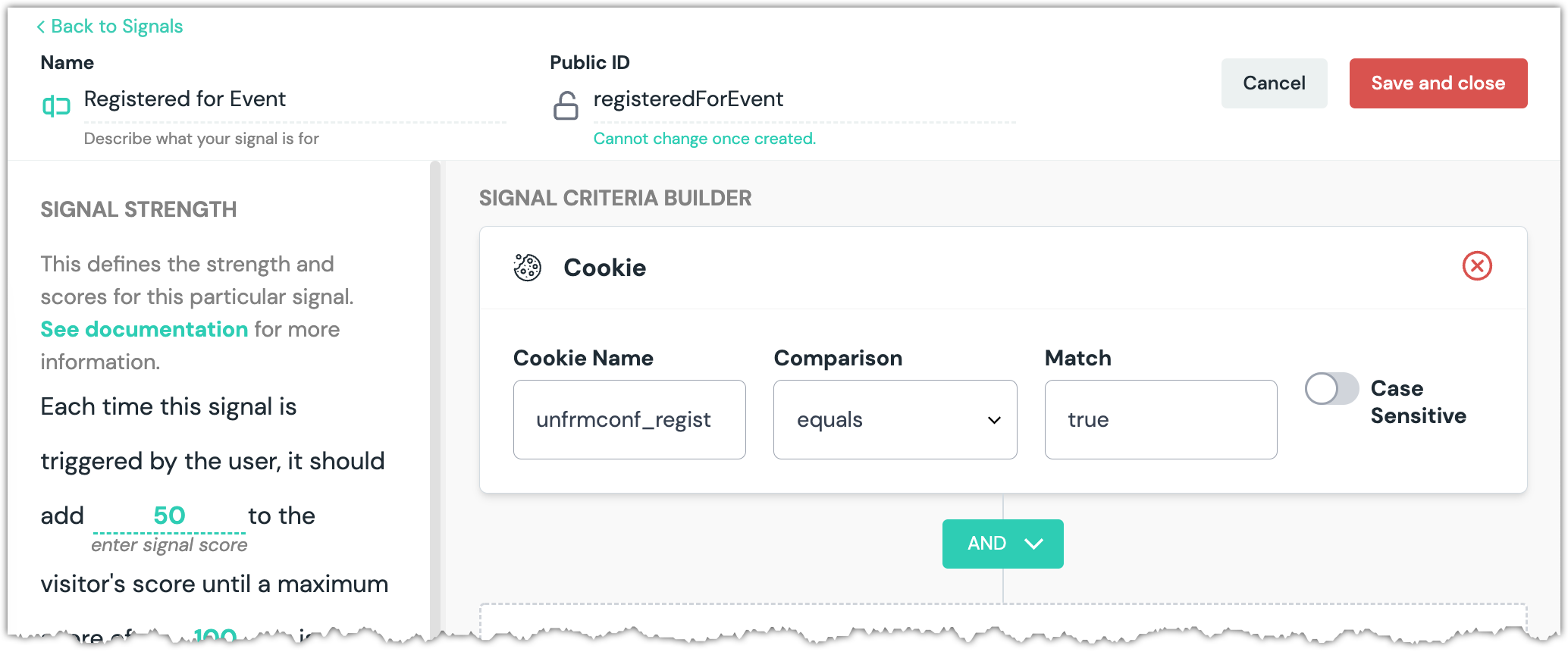 This shows that the tracker collected data, but it's not very intuitive. It says that the dimension "1_2" has a score of "50". The "1_2" is a combination of the public IDs for the enrichment Persona and the enrichment value Developer.