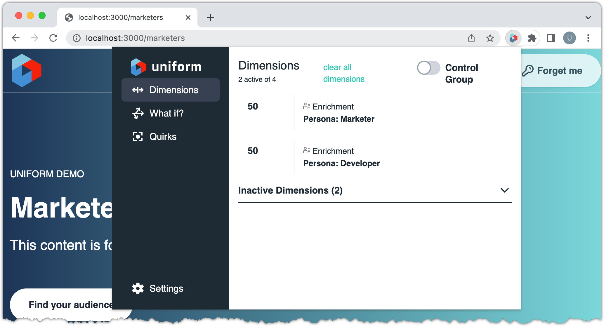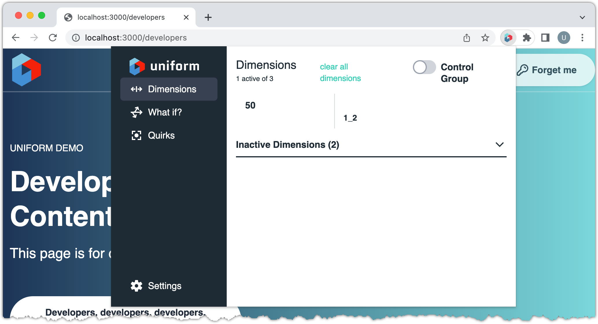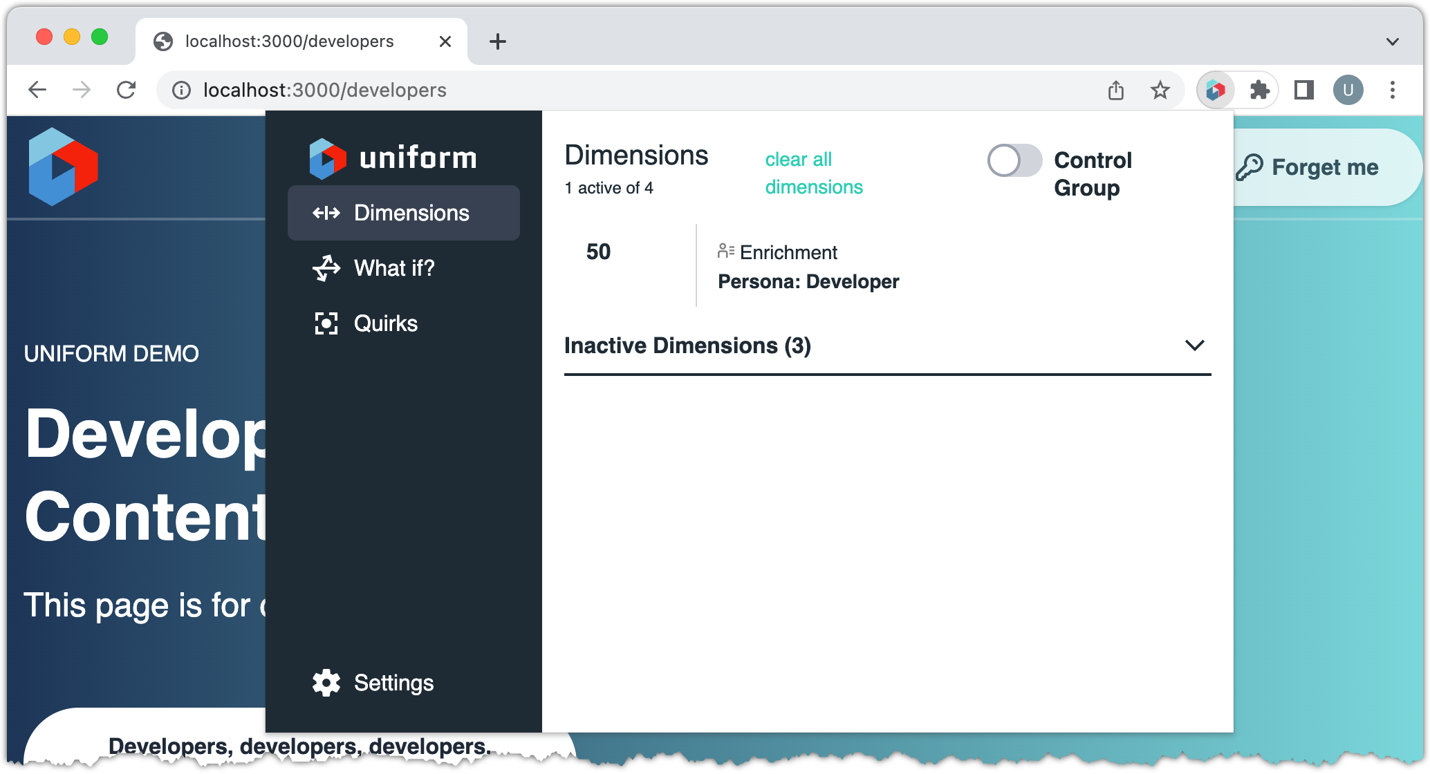 - Uniform Context browser extension - to facilitate development and testing personalization on the Next.js app. You can get the extension here. This is not required to use Uniform Context, but it makes development and testing much easier.