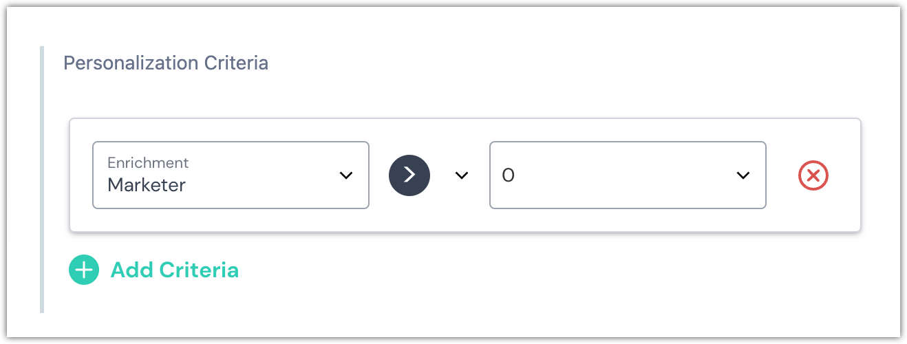 In the PERSONALIZATION CRITERIA section, from the dropdown select Personalized Hero.