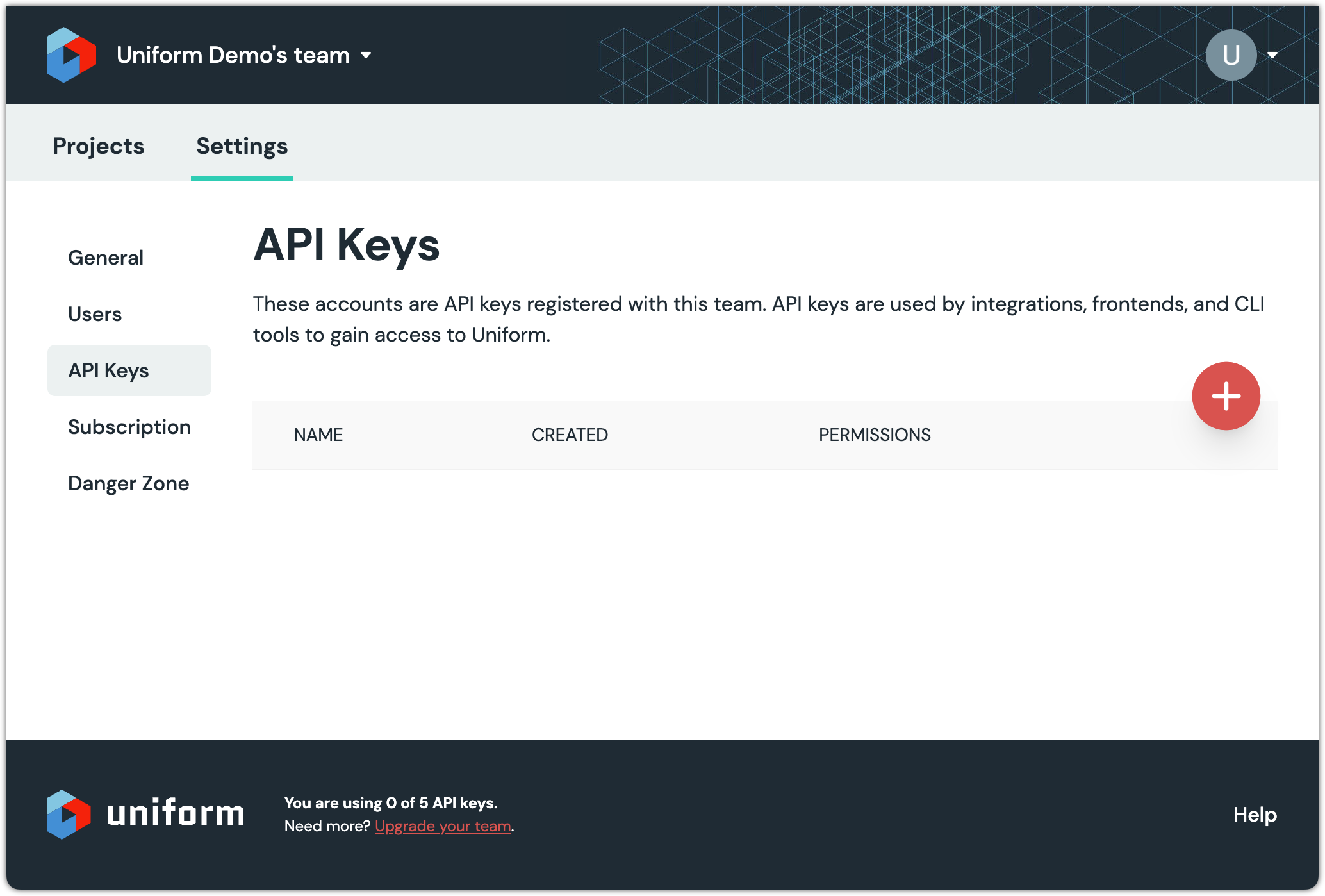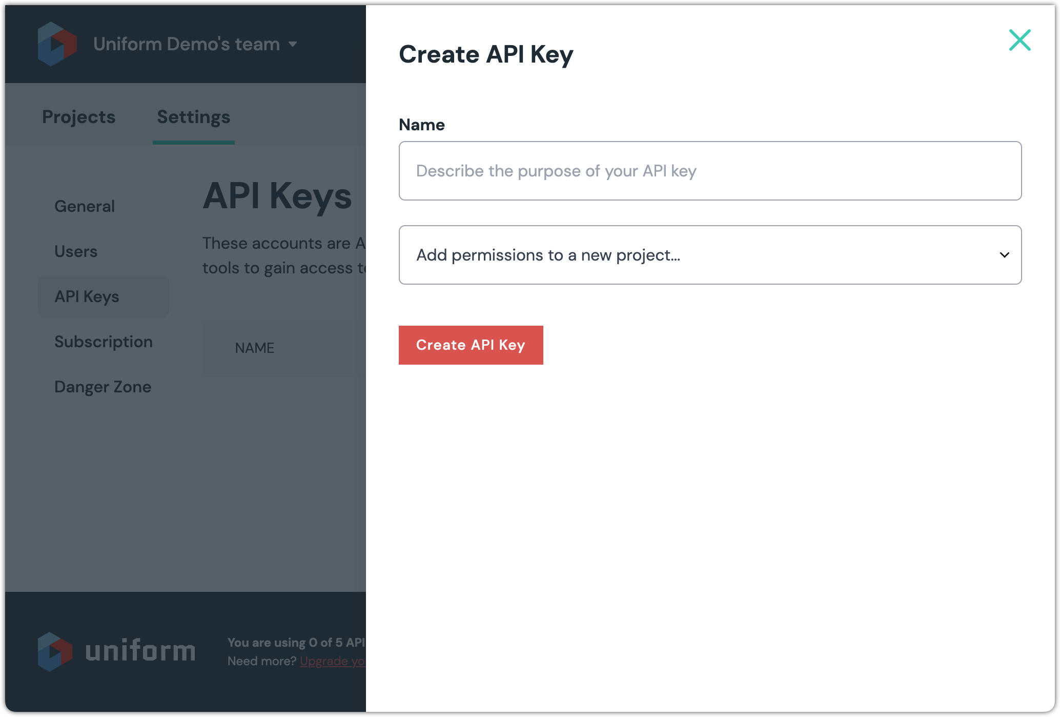 - Administrator access to Uniform - to create an API key. If you do not already have a Uniform account, you can get a free one at https://uniform.app.
