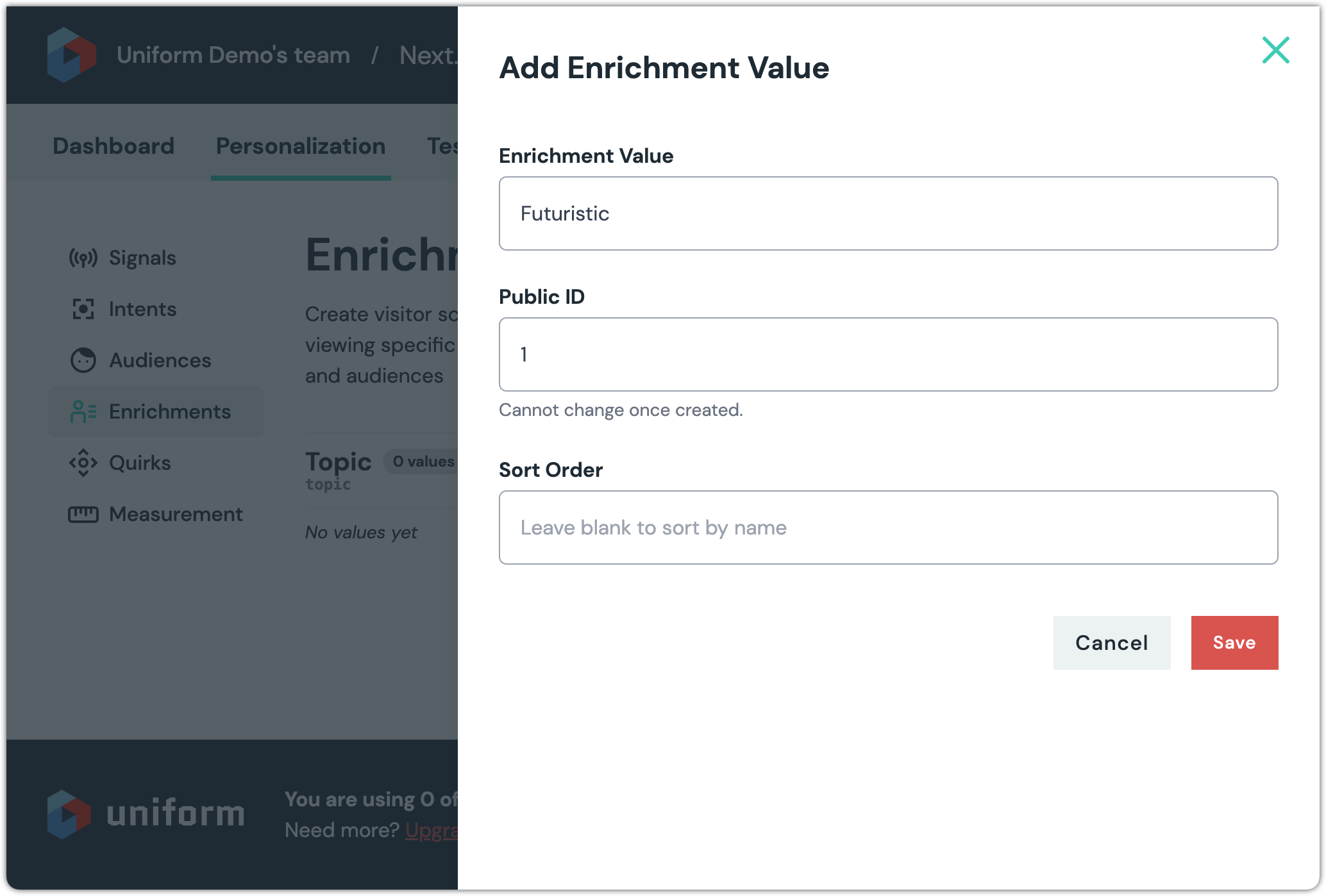 In Uniform, a project is the basic unit of organization. A project is where you will define the criteria you want to use to configure personalization.
