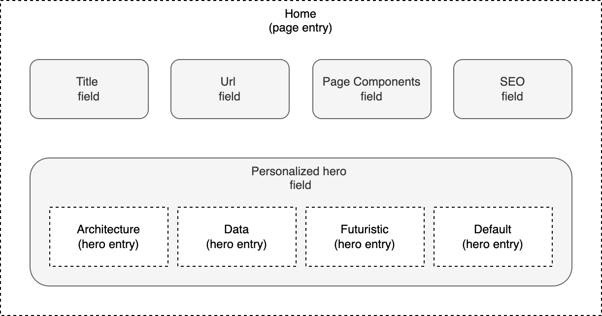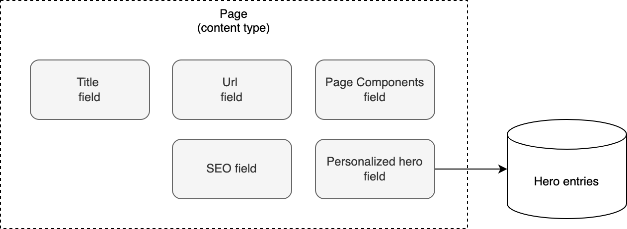 The Personalized hero field on the Page content type is a reference field. When you retrieve data for an entry, you must specify which reference fields you want to include. This line ensures the Personalized hero reference field is included.