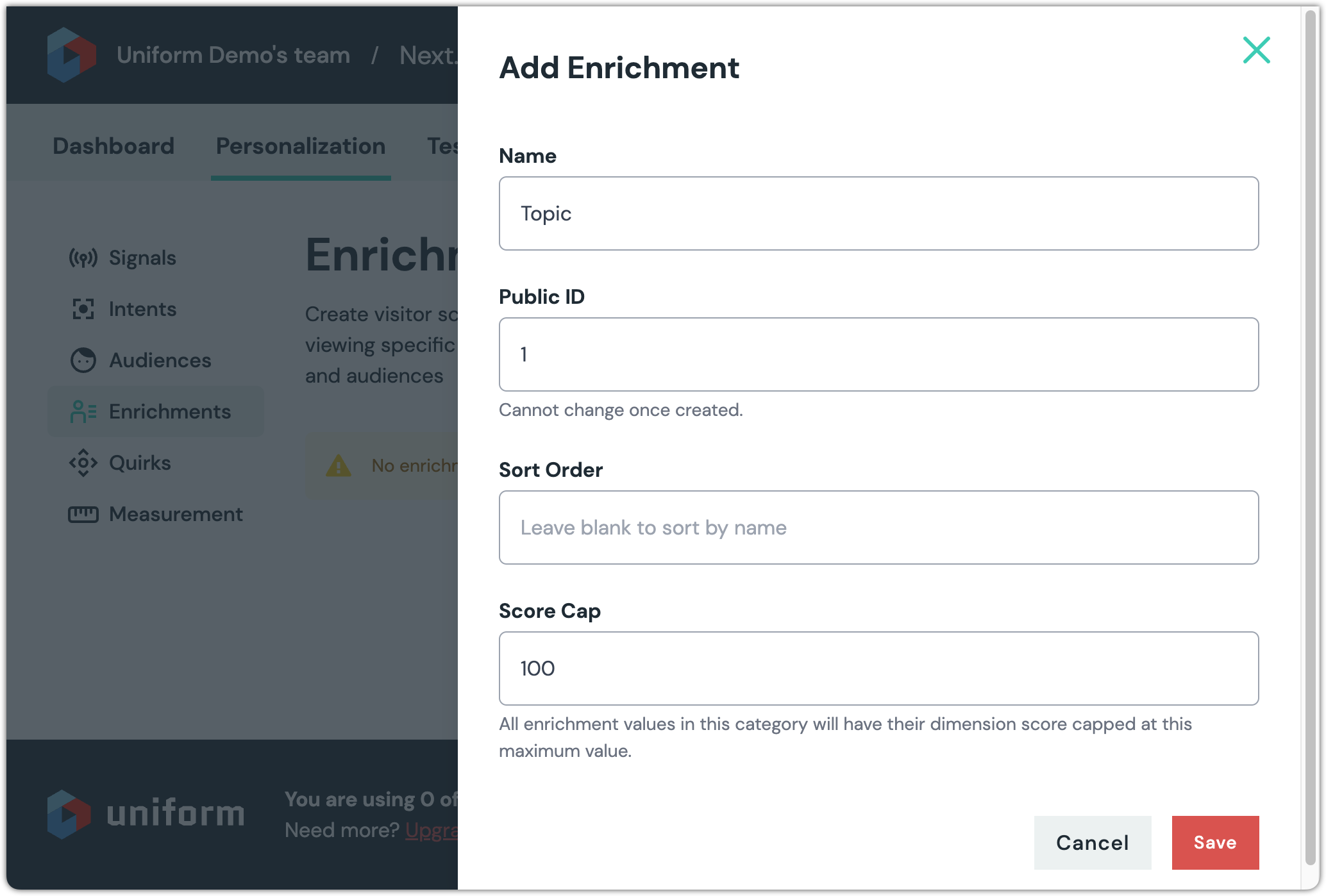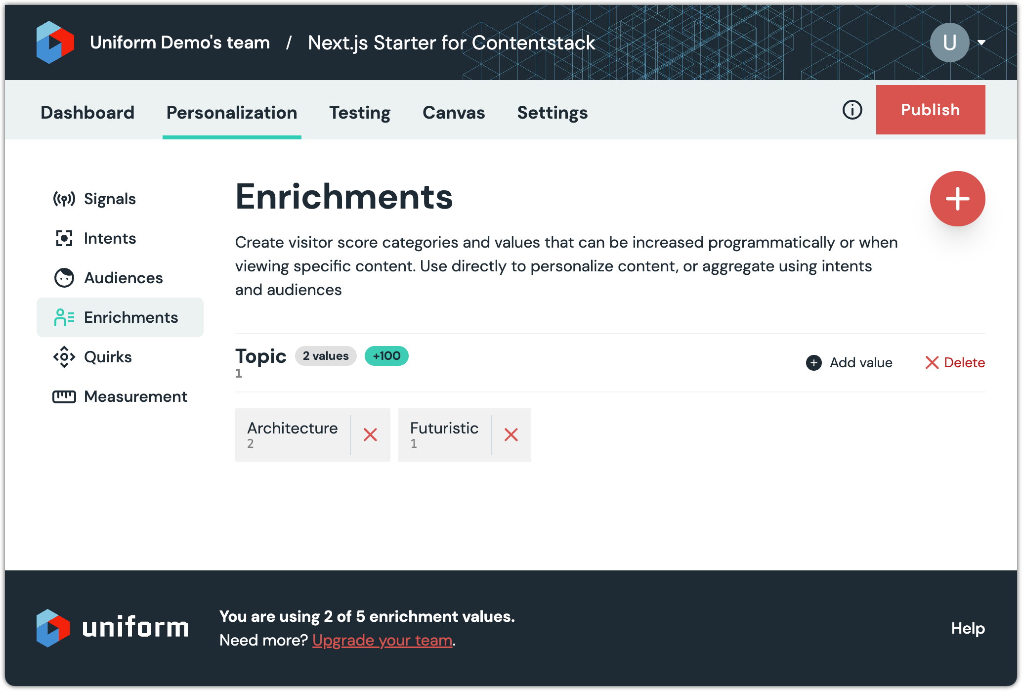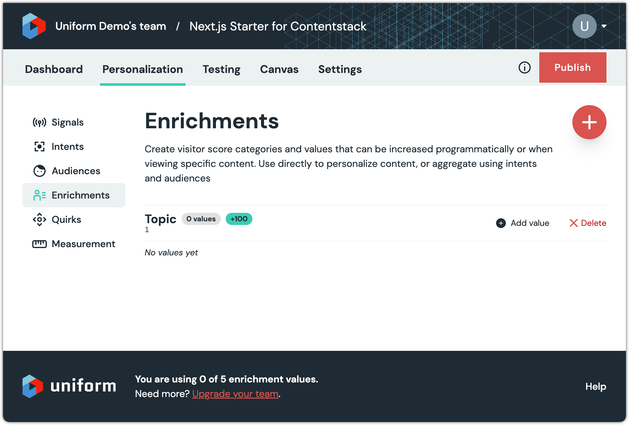 - Administrator access to Uniform - to configure the personalization settings that are available in Contentstack. If you do not already have a Uniform account, you can get a free one at https://uniform.app.