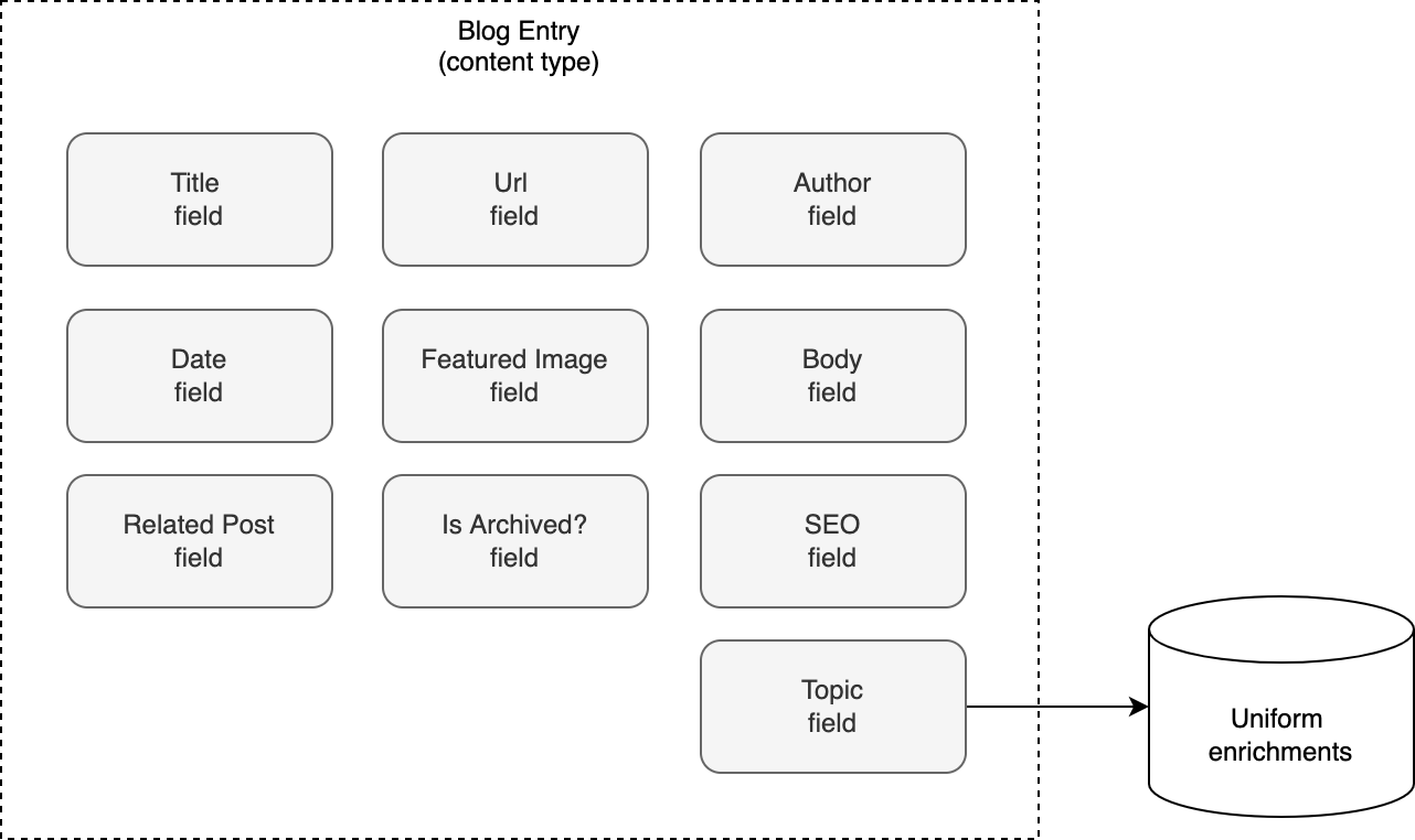 You must add a field to the content type Blog Entry to store the topic that is most relevant for each blog entry. The value for the topic will come from Uniform.
