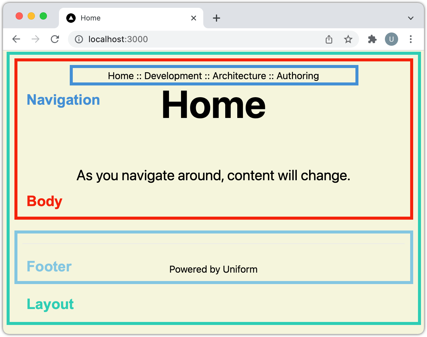 The footer component displays a link to the Uniform website.