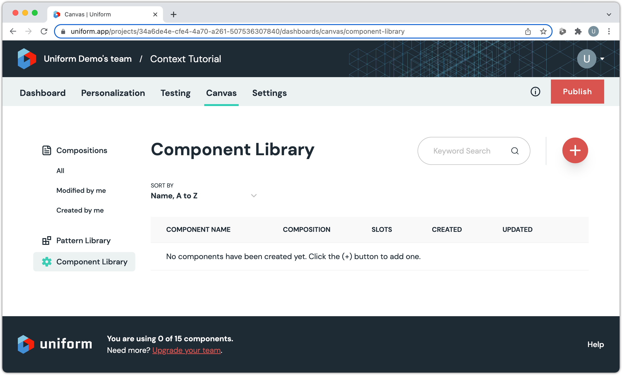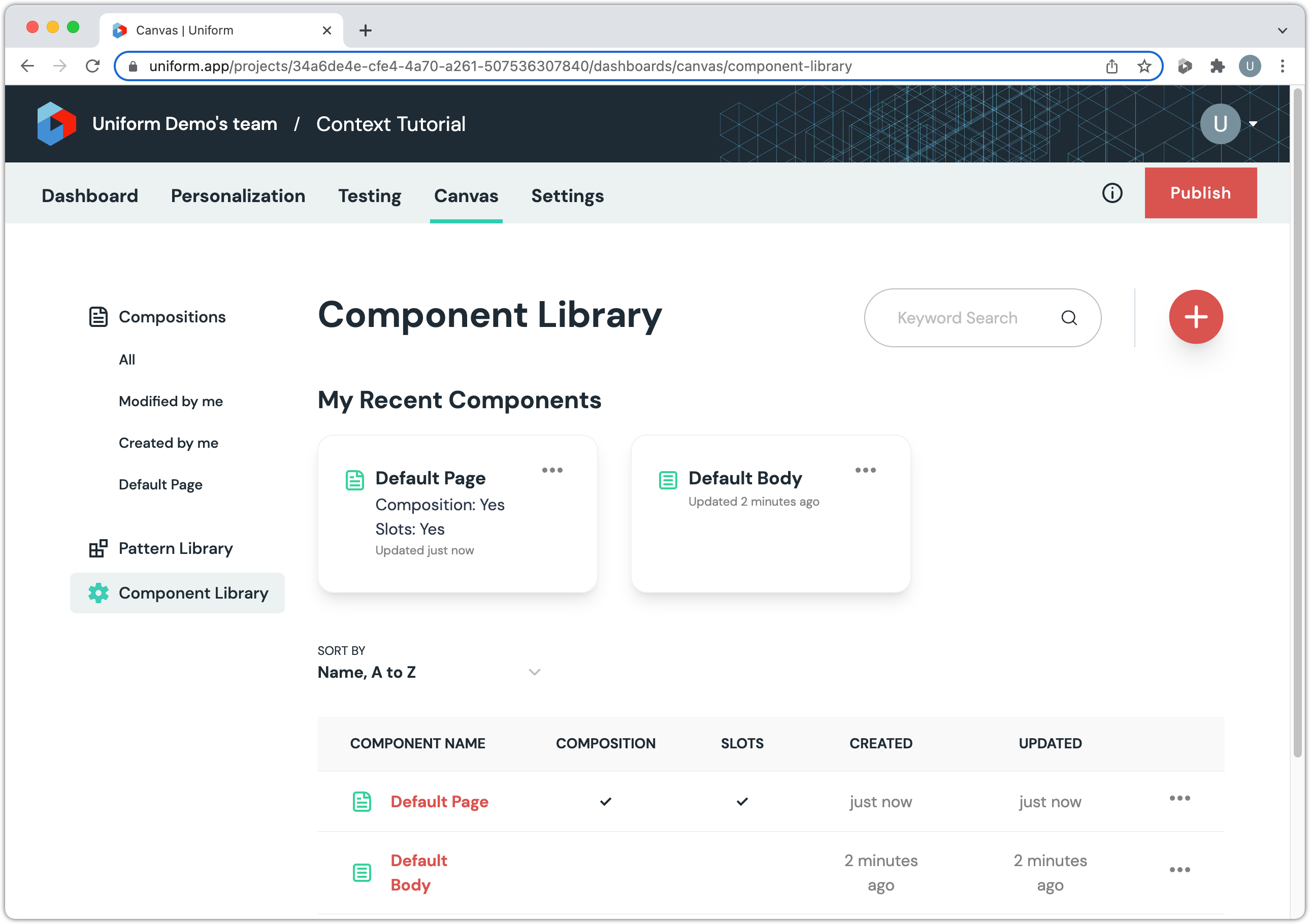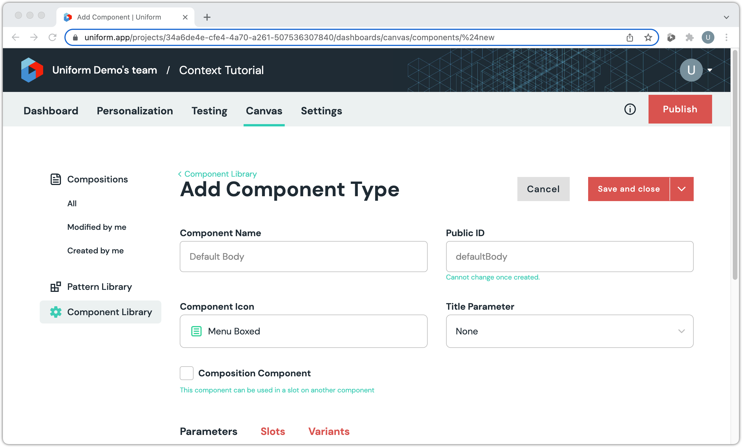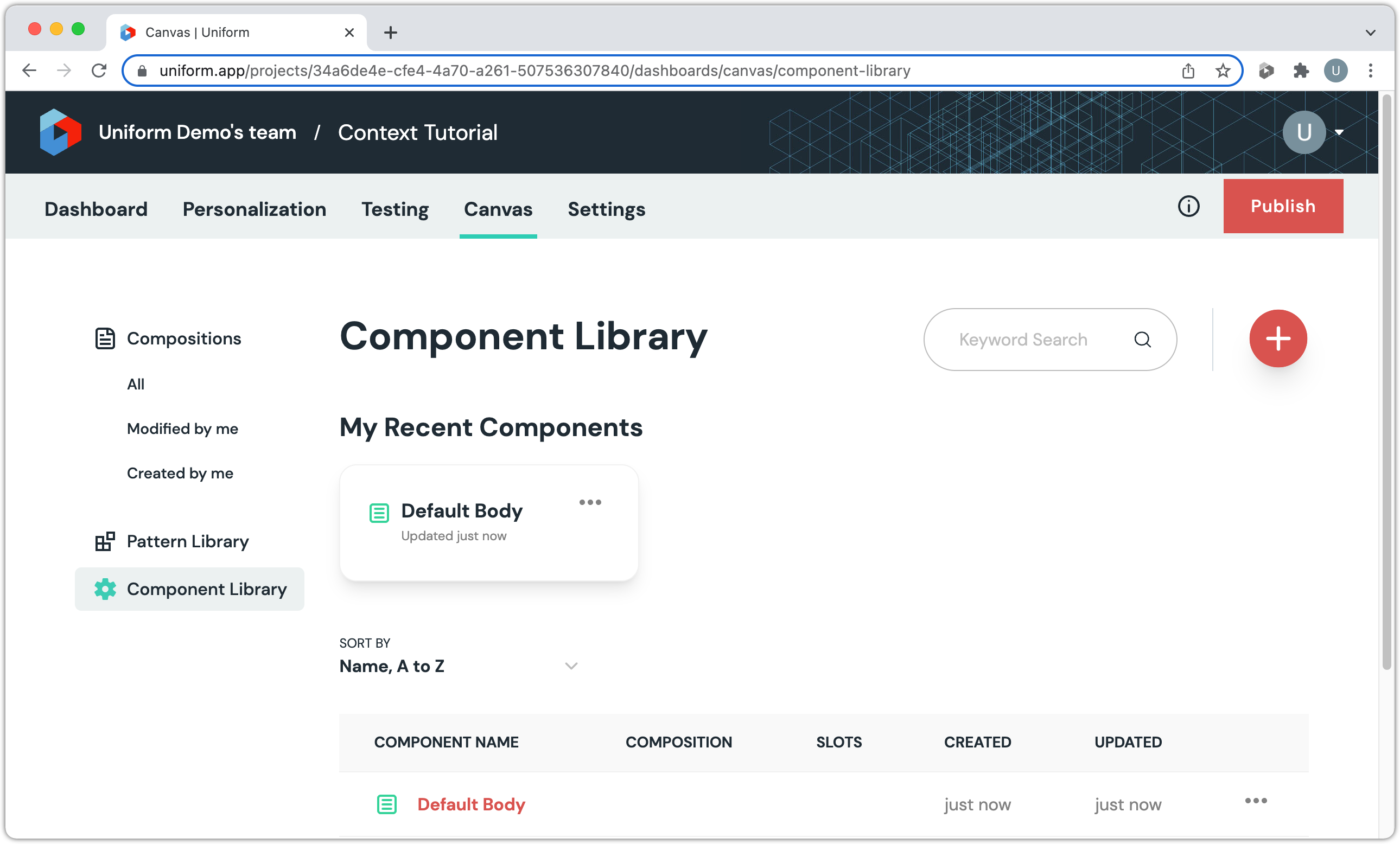 In the Uniform dashboard, navigate to Canvas > Component Library