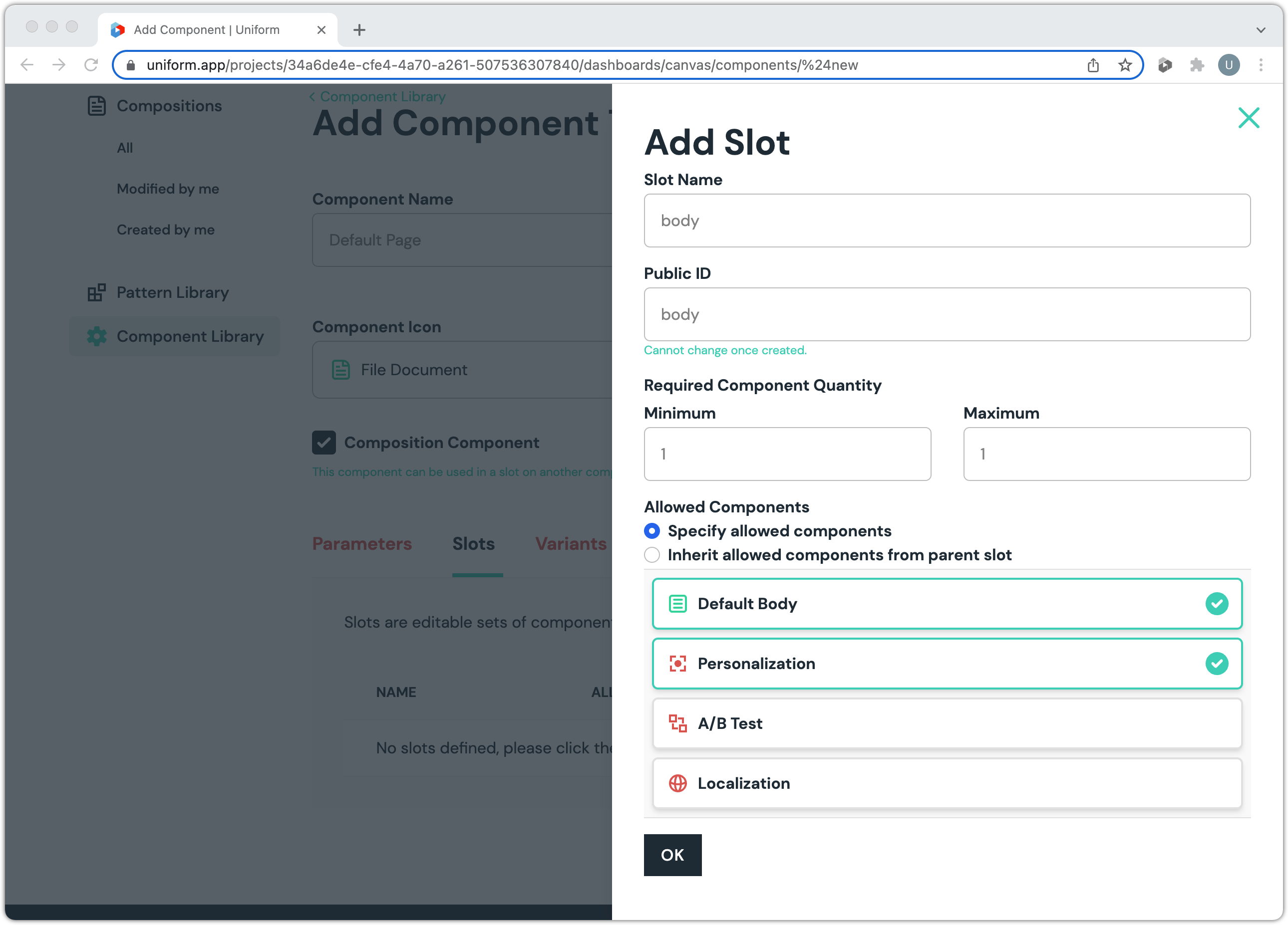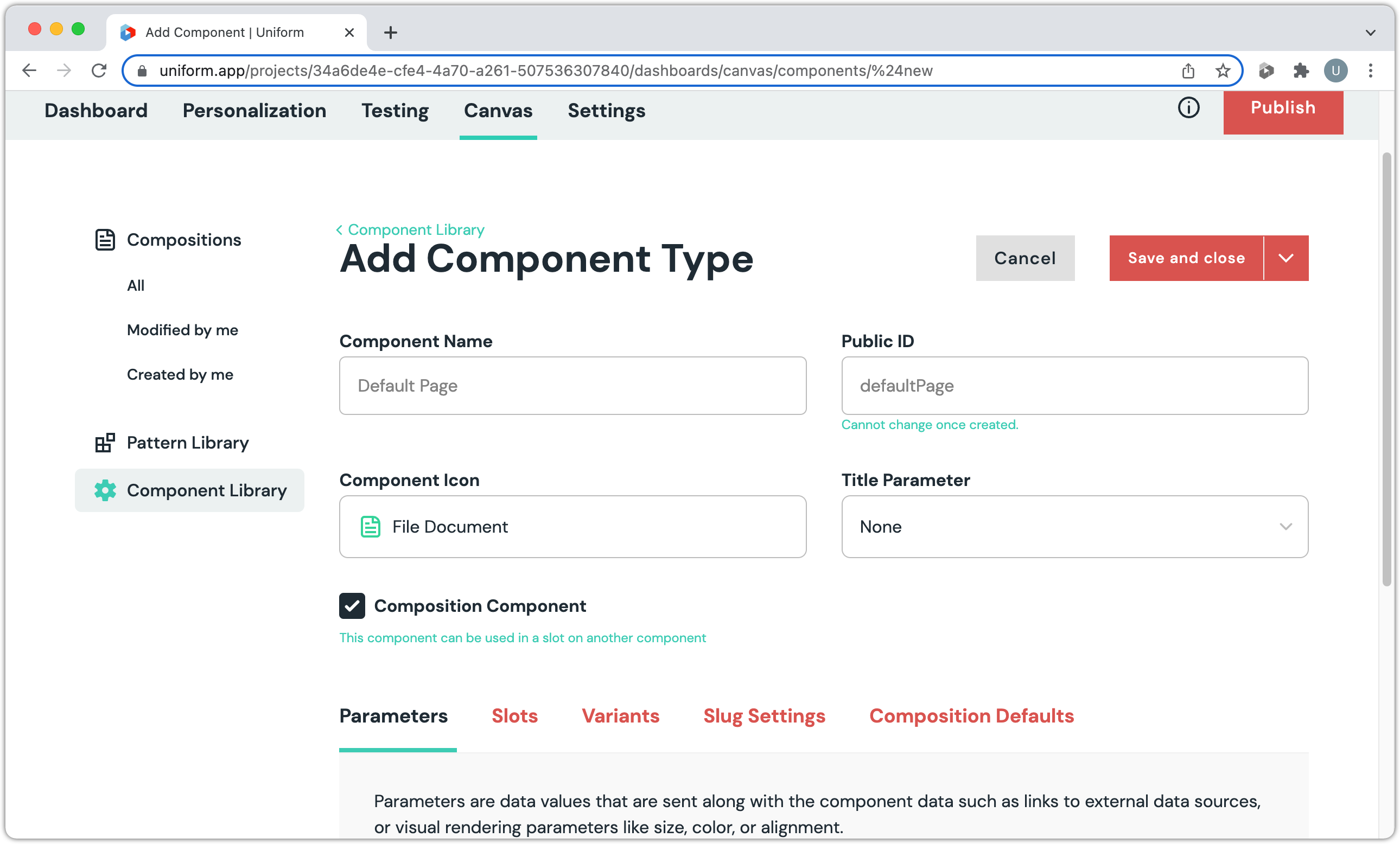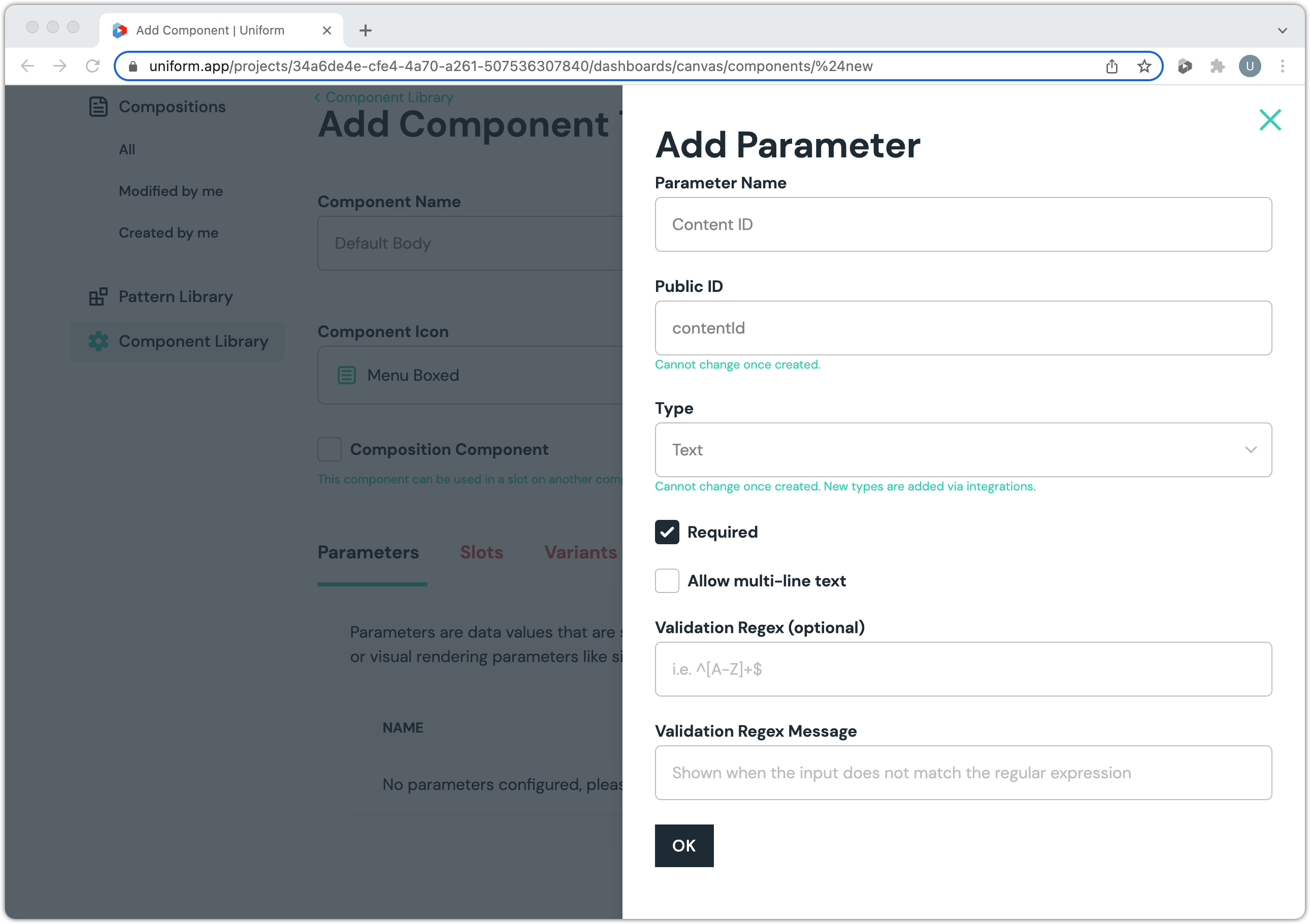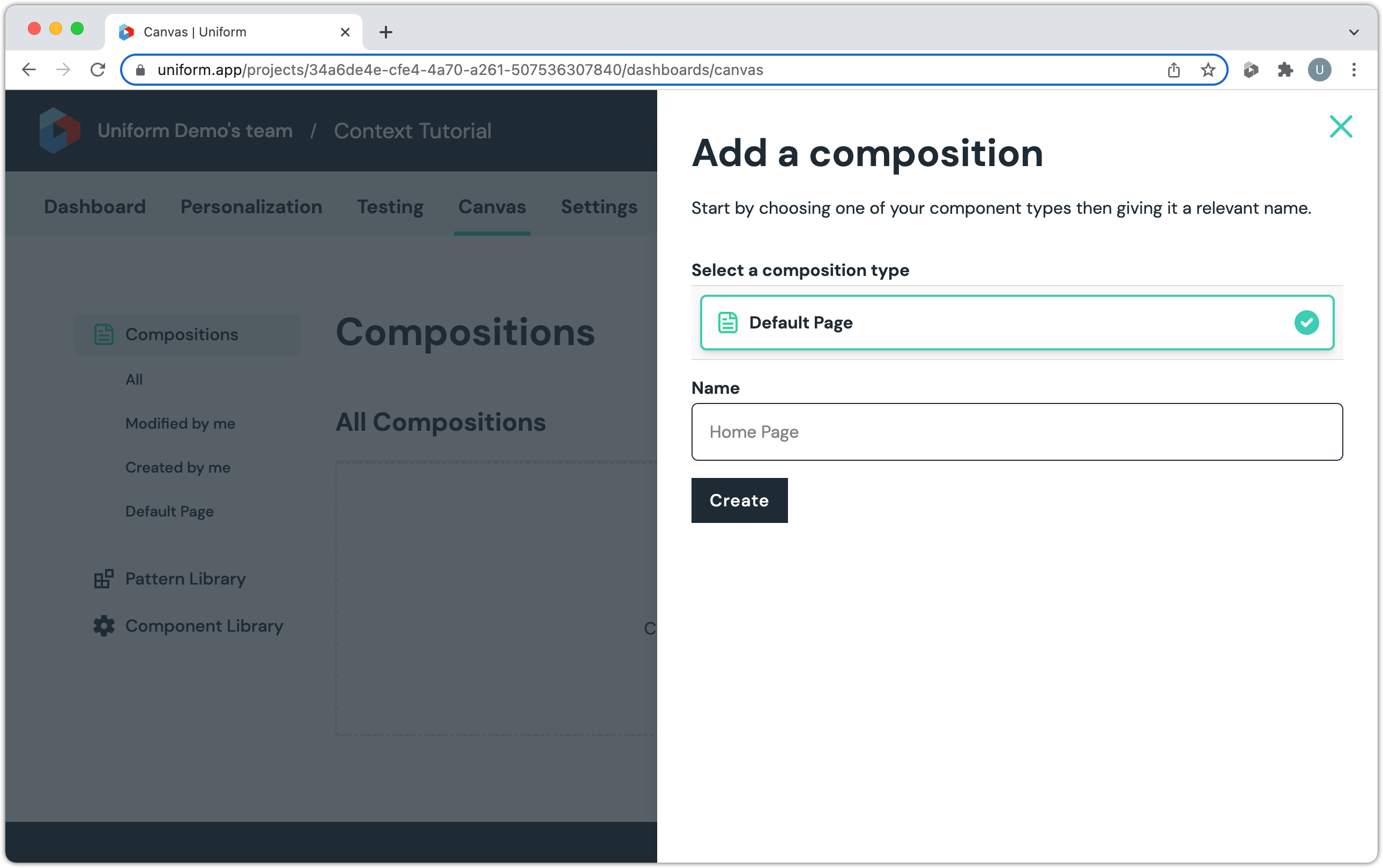 In the Uniform dashboard, navigate to Canvas > Component Library