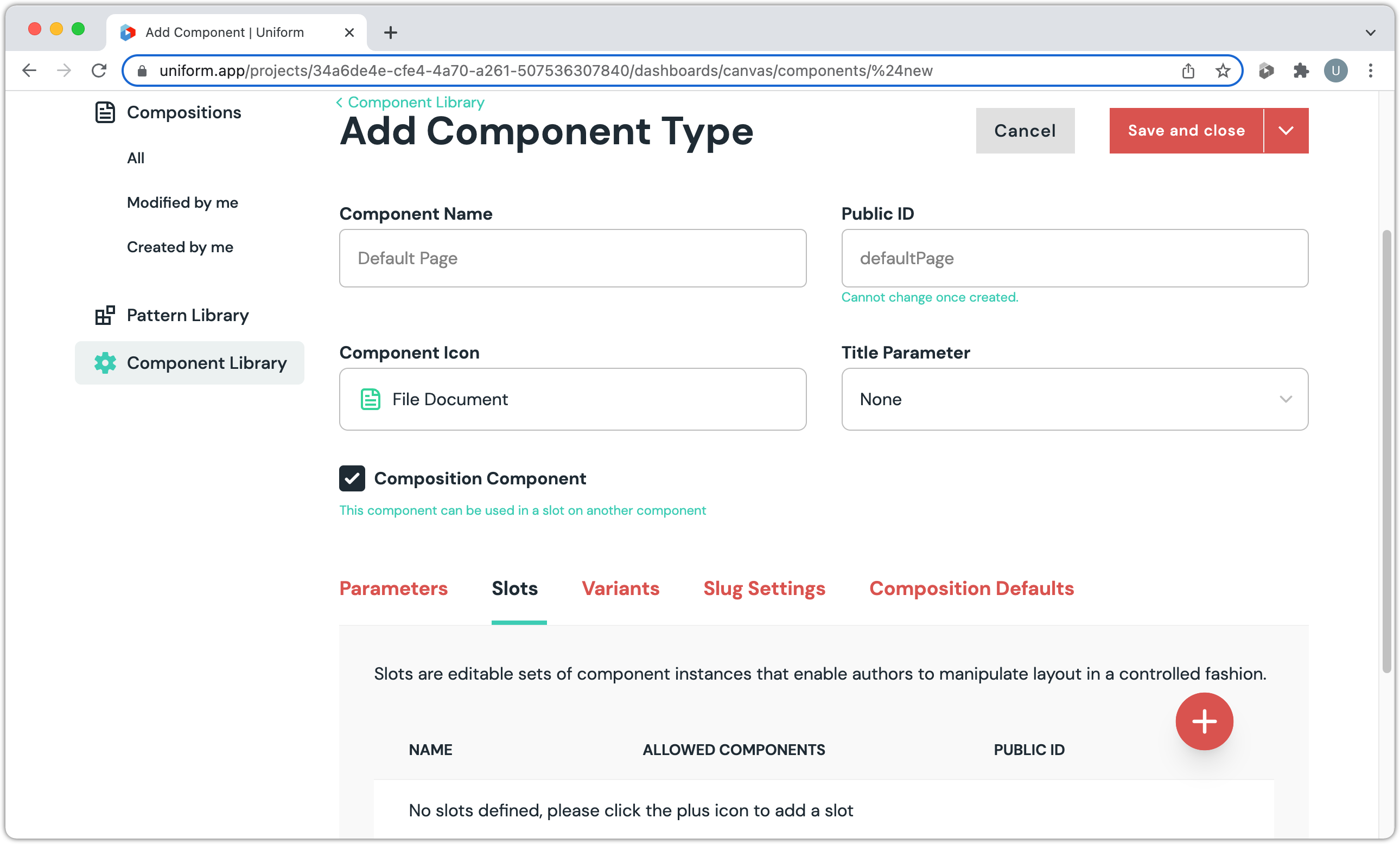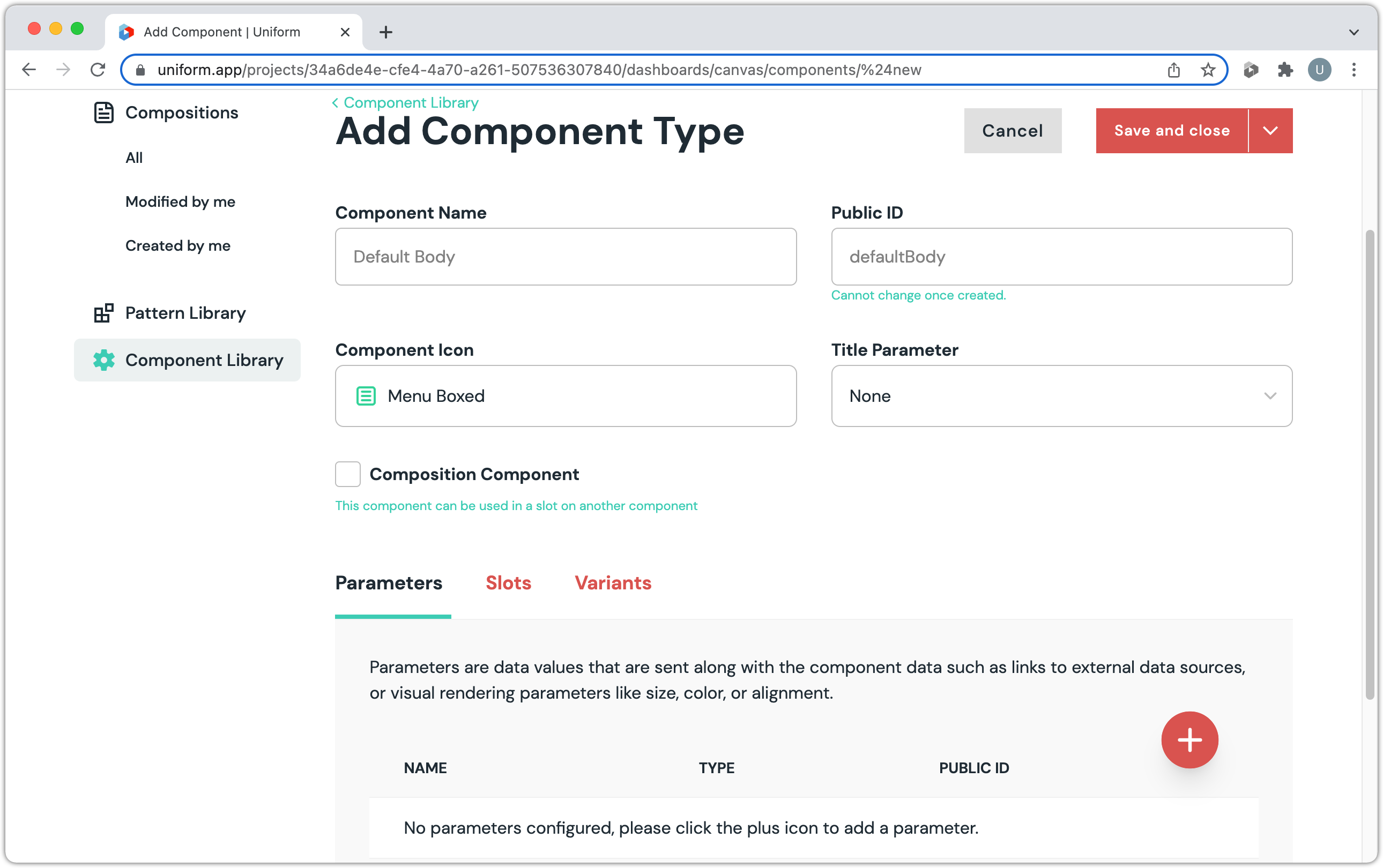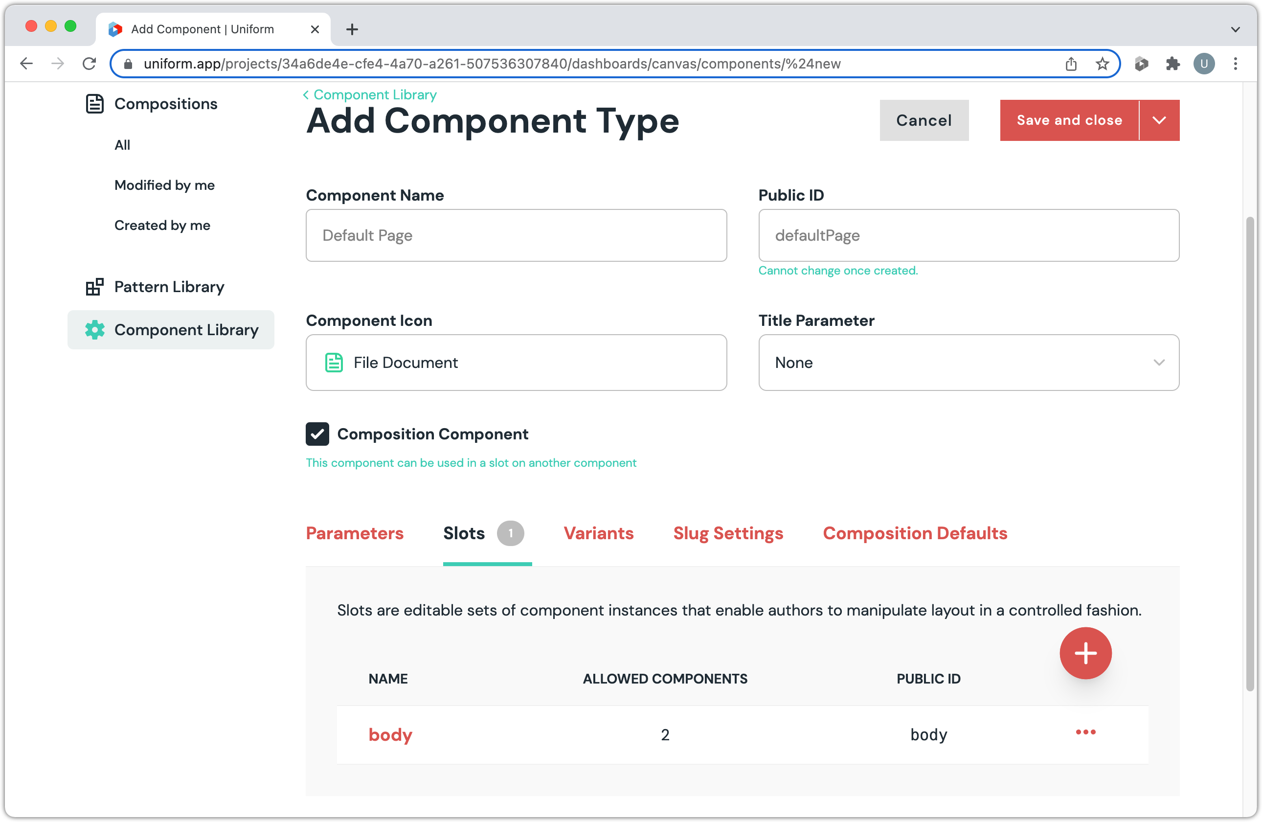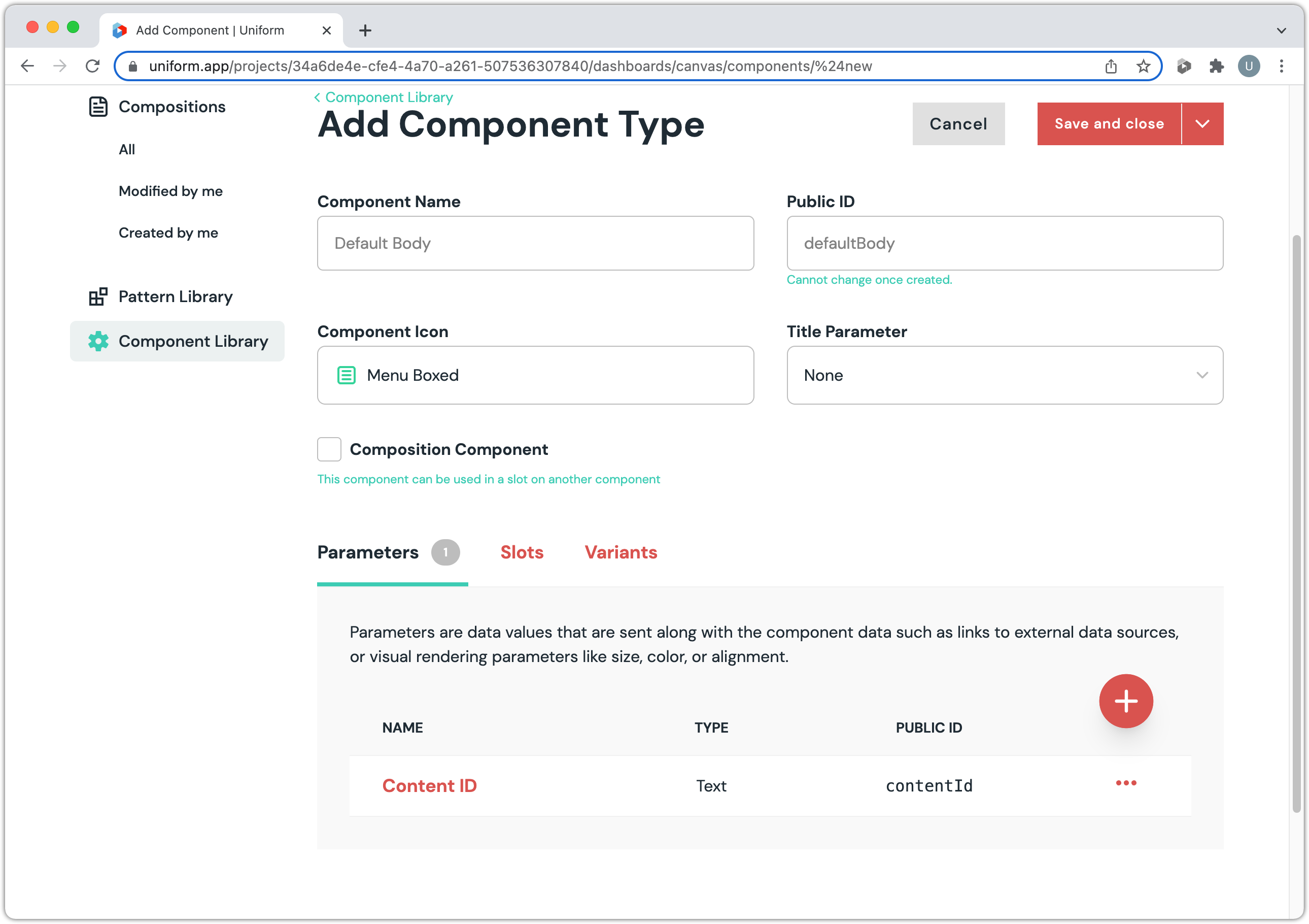 In the Uniform dashboard, navigate to Canvas > Component Library