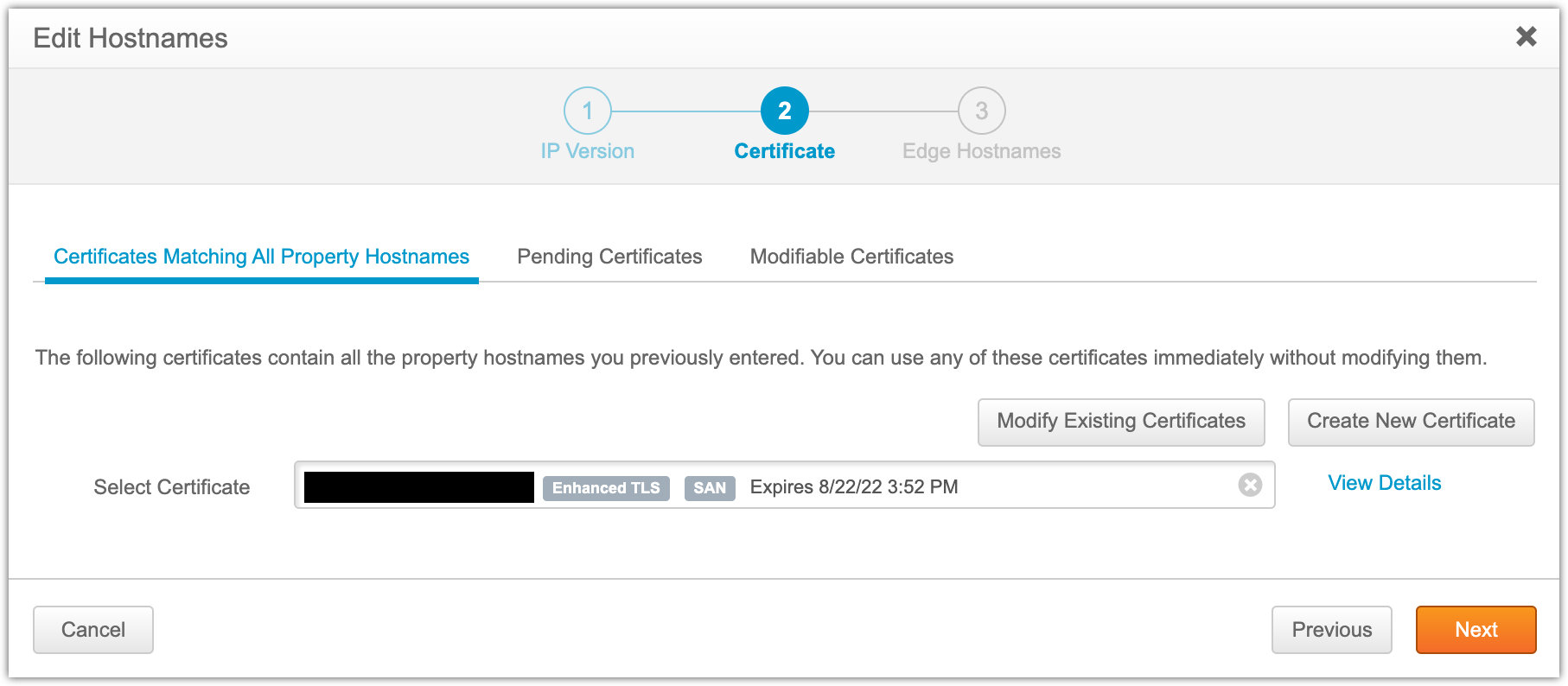In order to serve files to your visitors, Akamai needs a certificate that matches your domain name. Akamai supports multiples types of certificates.