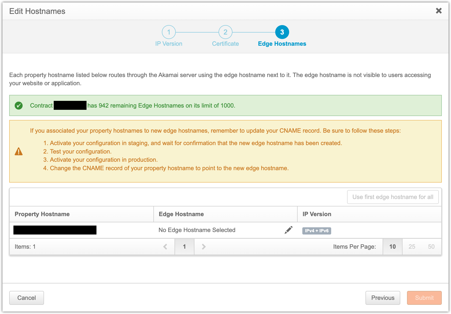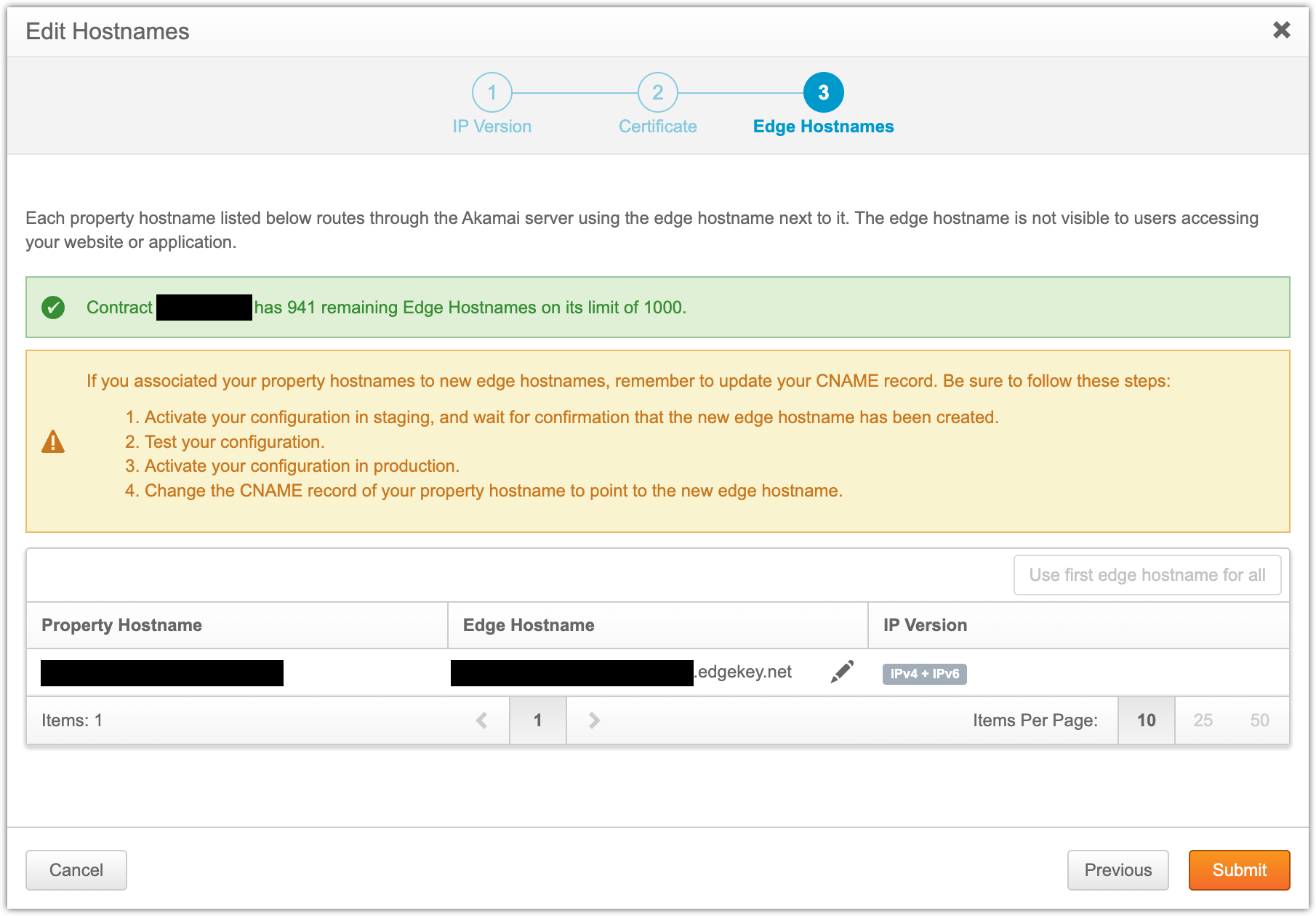 Akamai submits a request for a certificate to be generated and deployed. This can take 15 minutes or longer. But eventually you will see your certificate has been deployed to production.